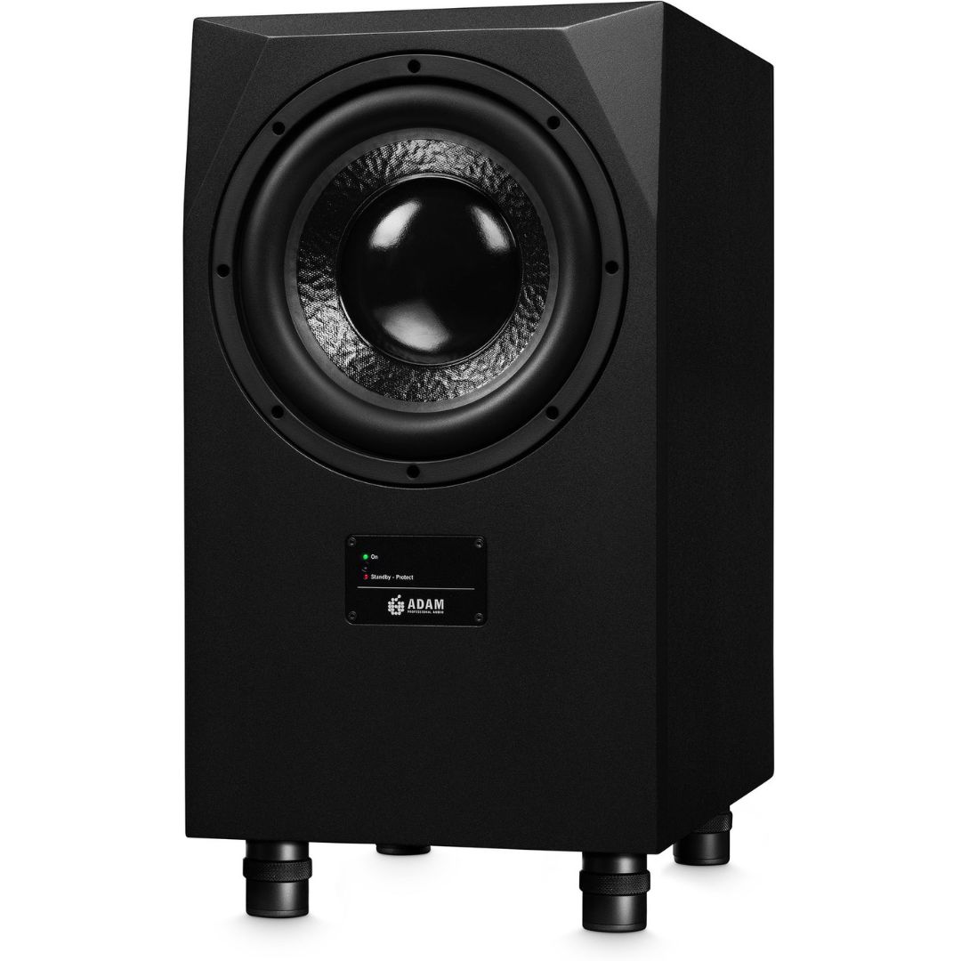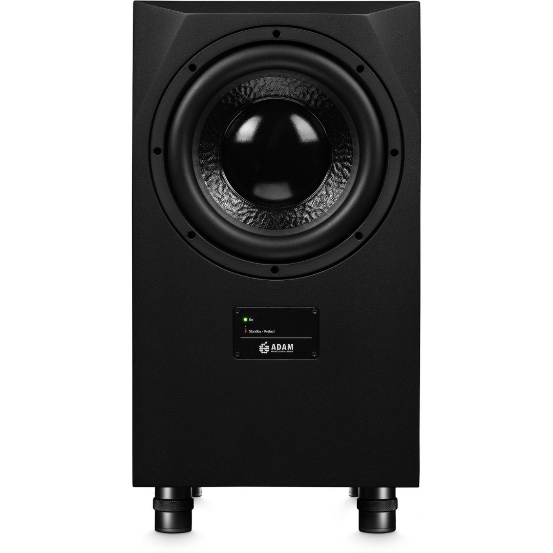 • The ADAM Audio Sub10 Mk2 is a powerful 10″ active studio subwoofer designed to extend the low-frequency response of nearfield and midfield monitoring systems down to 25 Hz, making it ideal for professional and project studios. It features a 200 W RMS (300 W peak) PWM amplifier for high efficiency and stable performance during long sessions, driving a robust woofer optimized for accurate bass reproduction. The Sub10 Mk2 includes XLR and RCA inputs/outputs, variable fourth-order Linkwitz-Riley crossovers, and rear-panel gain and filter controls, while the down-firing bass reflex tube reduces ventilation noise. Phase adjustment from 0° to 180° and separate bandwidth control allow flexible placement and integration with multiple satellites or additional subwoofers, delivering precise, undistorted low-end performance at up to 113 dB SPL.