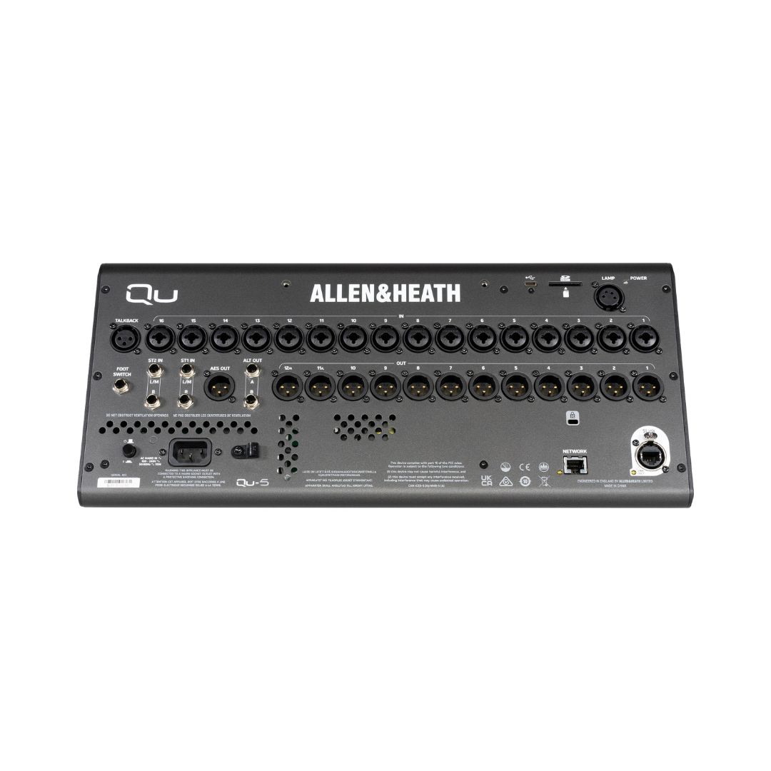 • The Allen & Heath Qu-5 is a compact digital mixer built around a 96 kHz XCVI core, delivering pristine audio with upgraded preamps and high-performance converters. Its redesigned interface features motorised faders, enhanced channel displays, and a fast 7″ touchscreen for smooth, intuitive mixing. Workflow is improved with four customisable layers, flexible routing, and more SoftKeys for quick control. Recording is versatile thanks to a 32×32 USB-C interface, SD-card multitrack capture, and USB-A stereo playback. The SLink port enables full Everything I/O integration and up to 128×128 channels of 96 kHz audio with other A&H systems. DEEP-ready processing, Gain and Feedback Assistants, AMM, and remote-control apps make it a powerful solution for live sound, broadcast, and installations.