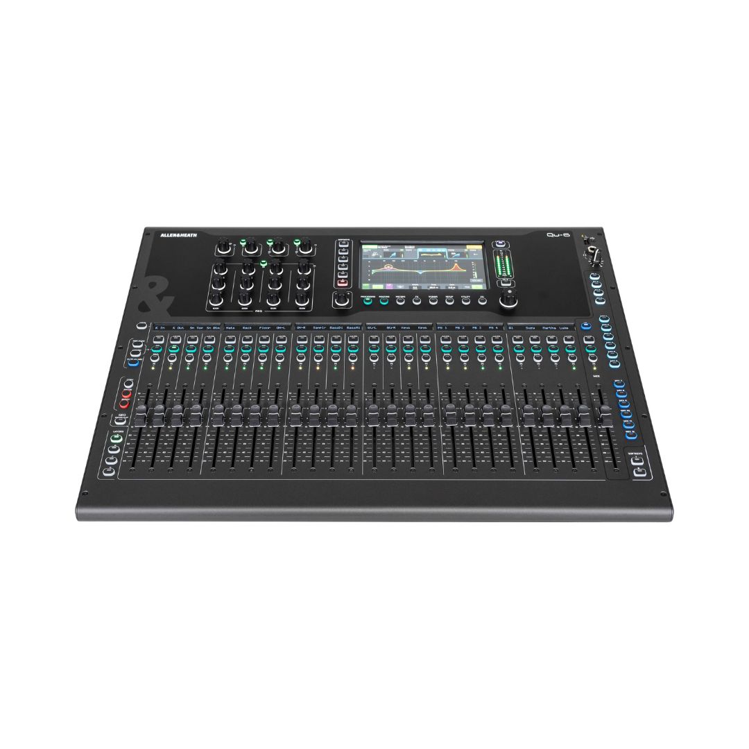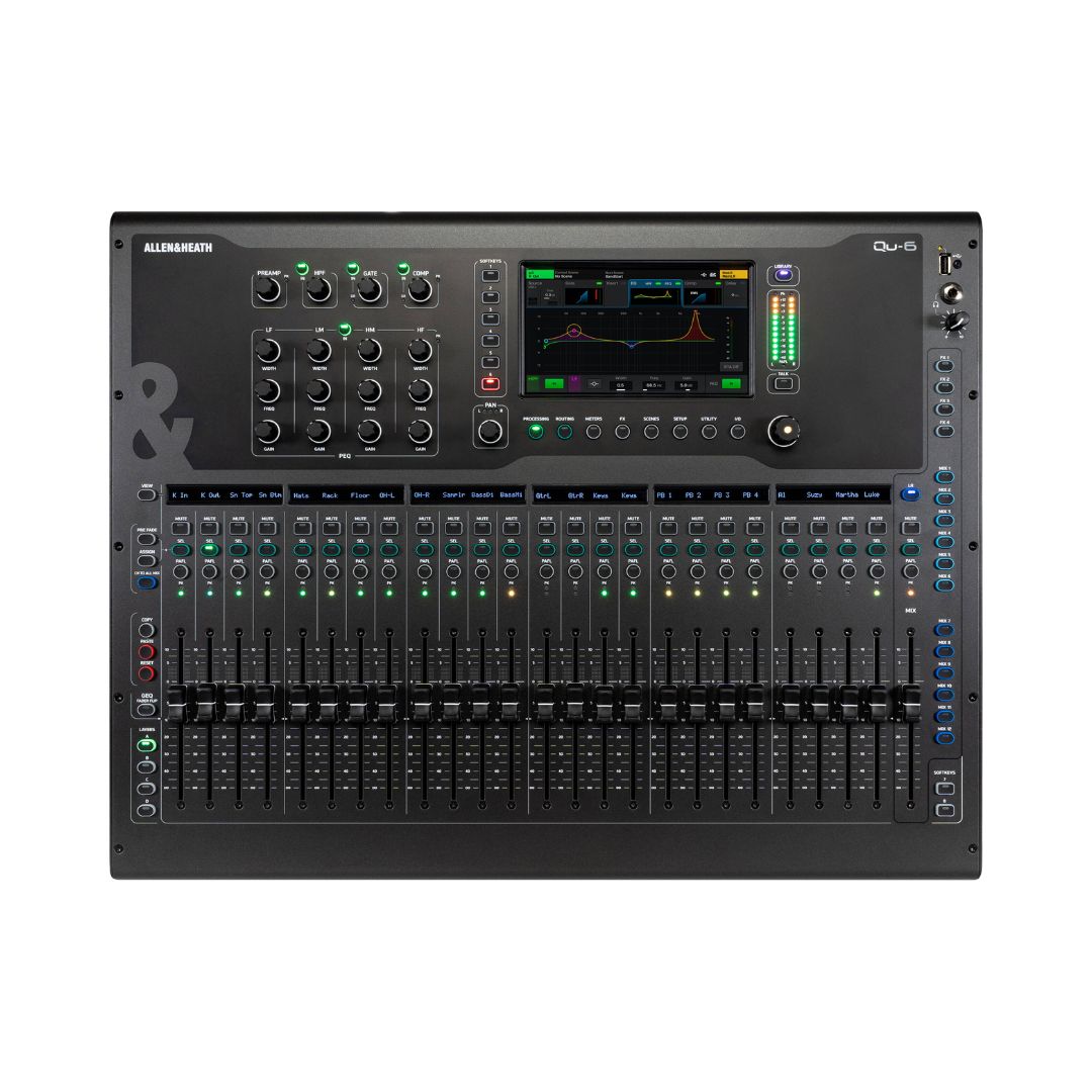 The Allen & Heath Qu-6 is a compact 38-in/24-out 96 kHz digital mixer built on the XCVI core, delivering clean, detailed audio with upgraded preamps and converters. Its redesigned interface adds a fast 7″ touchscreen, motorised faders, channel displays, and four custom layers for smooth, walk-up-and-mix workflow. A 32×32 USB-C interface, SD multitrack support, and USB-A stereo recording provide flexible capture options. The SLink port enables full Everything I/O expansion and 128×128 audio networking. DEEP Processing, Gain and Feedback Assistants, and a 32-channel AMM enhance efficiency and control for live, studio, and installed sound.