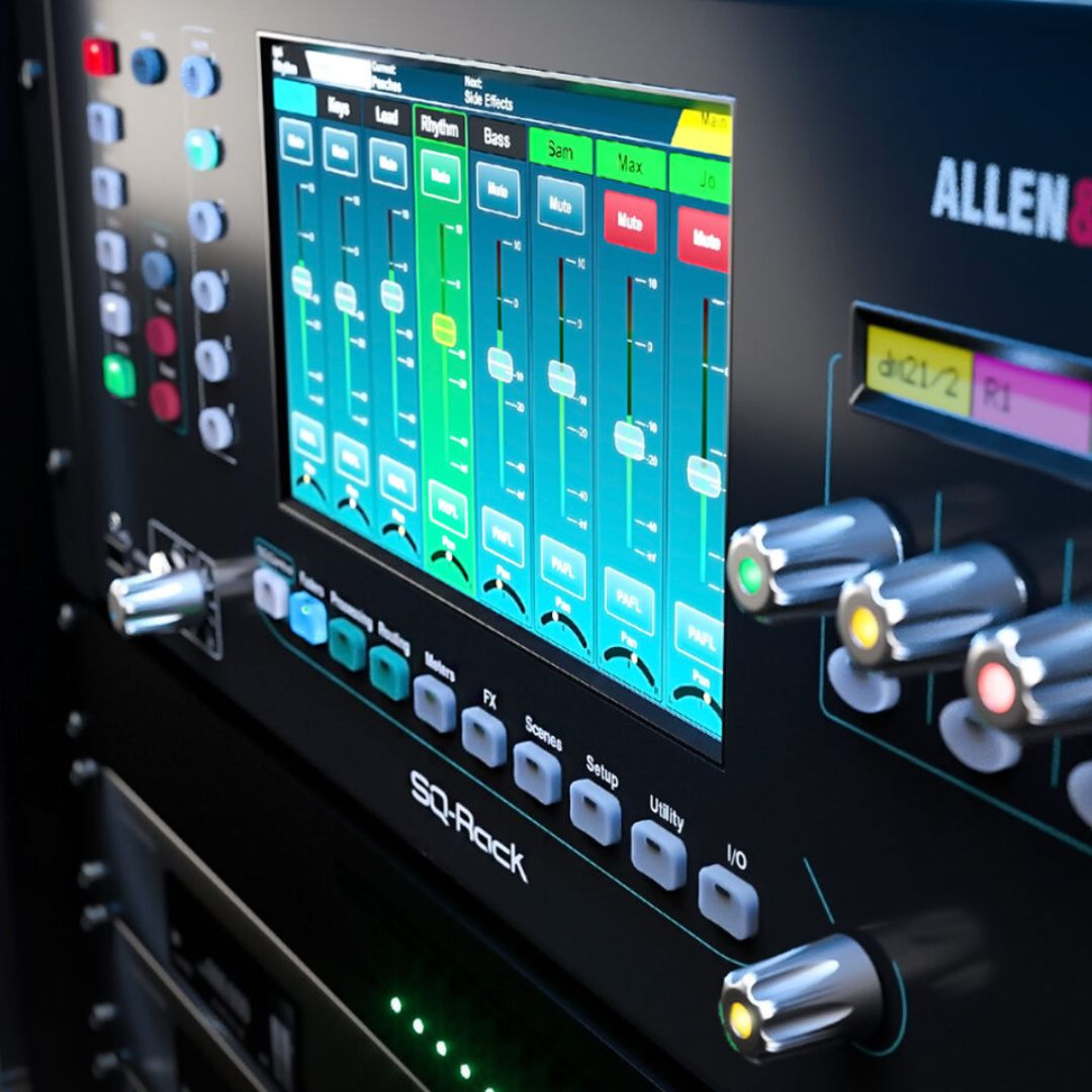 The Allen & Heath SQ-Rack is a 48-channel, 36-bus 96 kHz rackmount digital mixer designed for live sound, AV, touring, and installations. Powered by the XCVI FPGA engine, it delivers pristine audio quality with ultra-low latency under 0.7 ms and full DEEP processing support. It features 16 onboard mic preamps, 3 stereo line inputs, 12 stereo mixes, 3 stereo matrices, and 8 stereo FX engines with dedicated returns. Extensive expansion is available via SLink and optional Dante, Waves, or MADI cards, plus a built-in 32×32 USB audio interface and SQ-Drive recording. Control is handled through a 7″ touchscreen, assignable SoftKeys and Soft Rotaries, and full remote operation using SQ apps. Housed in a rugged 4U all-metal chassis, SQ-Rack is ideal for fixed installs, touring rigs, and professional IEM systems without compromising power or flexibility.