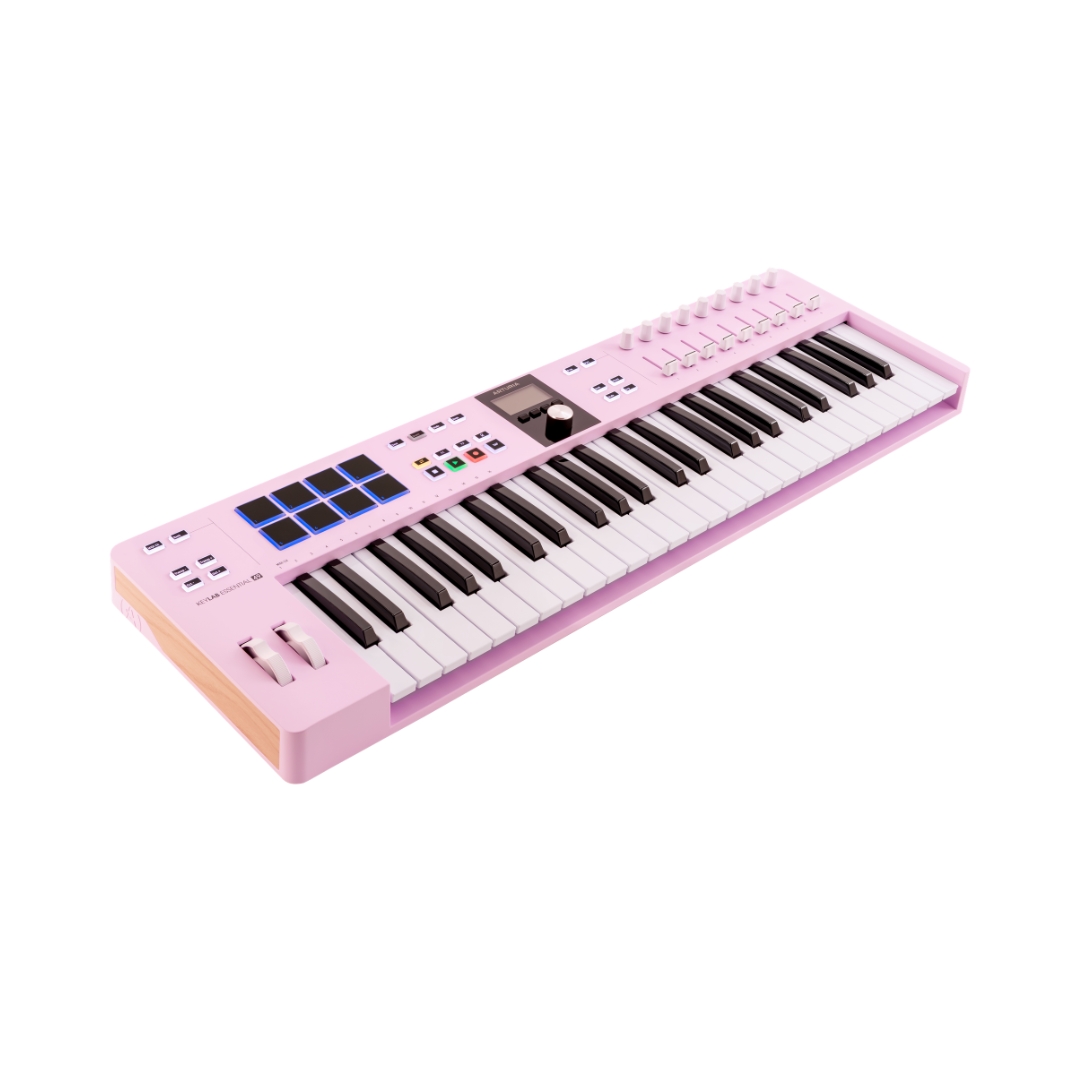 - The Arturia KeyLab Essential mk3 is a versatile MIDI controller and software package with 49 synth-action keys and a variety of controls including encoders, sliders, pads, switches, and wheels. It offers 1:1 control of included virtual instrument software and DAWs, with customization options available. KeyLab Essential mk3 utilizes MCU and HUI protocols for seamless DAW control across platforms. It’s compatible with Mac, Windows, iOS, and Android devices, functioning as a Class-Compliant USB device.