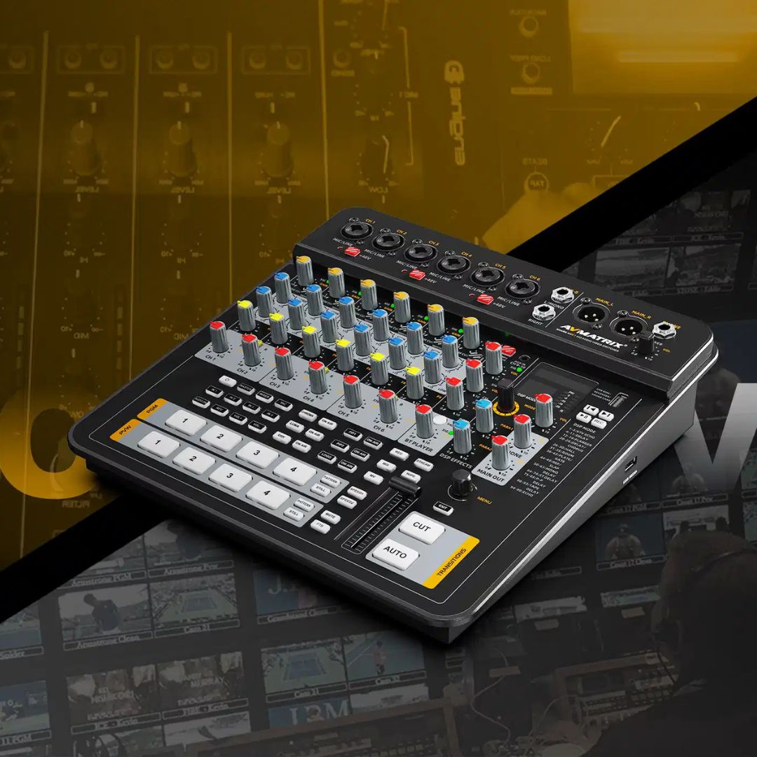 Equipped with six mic/line inputs, stereo line options, XLR outputs, and 99 DSP audio effects, it provides full mixing control with EQ, filters, and phantom power. This ensures studio-grade audio for events, broadcasts, and content creation.