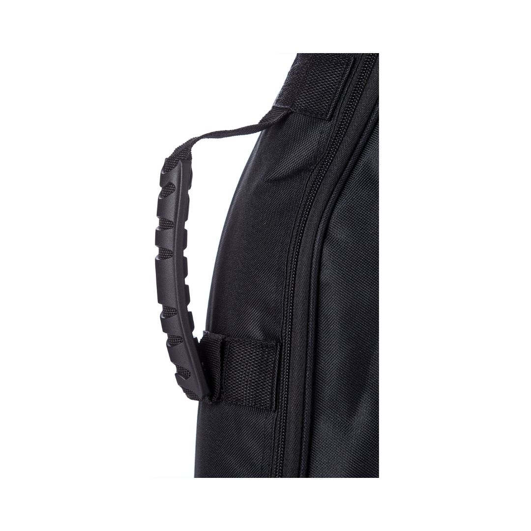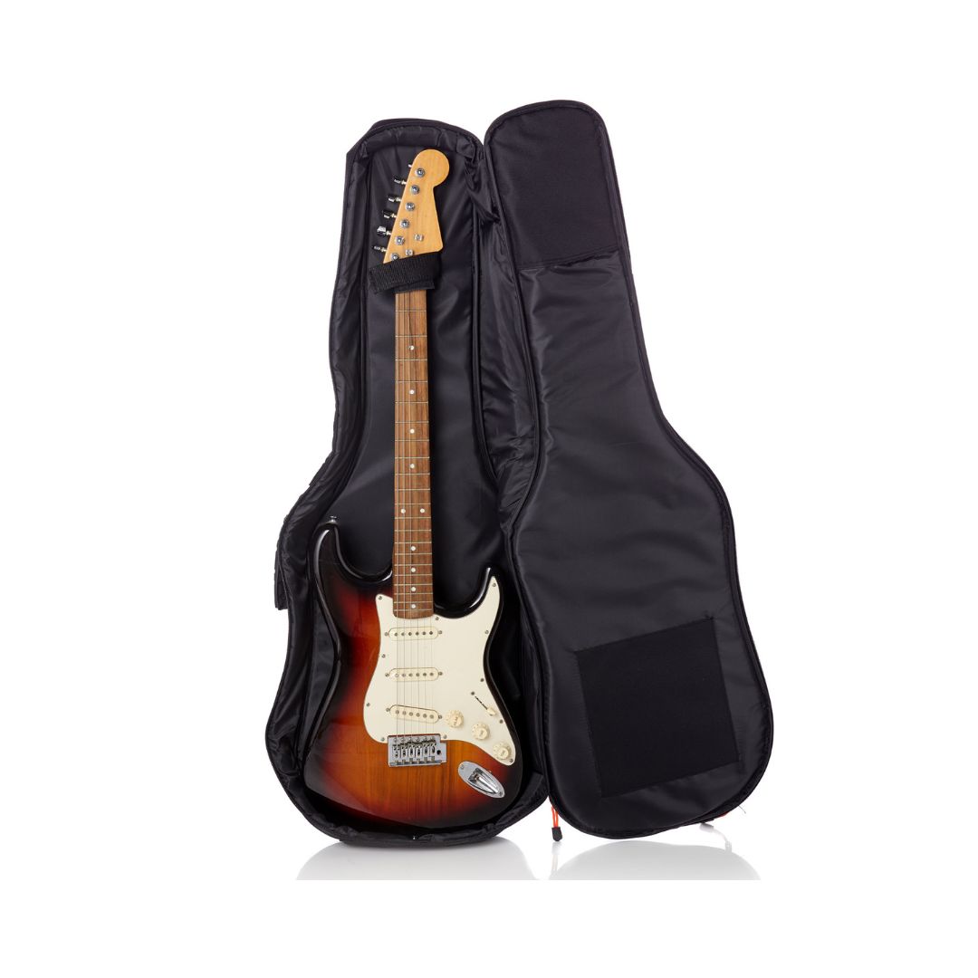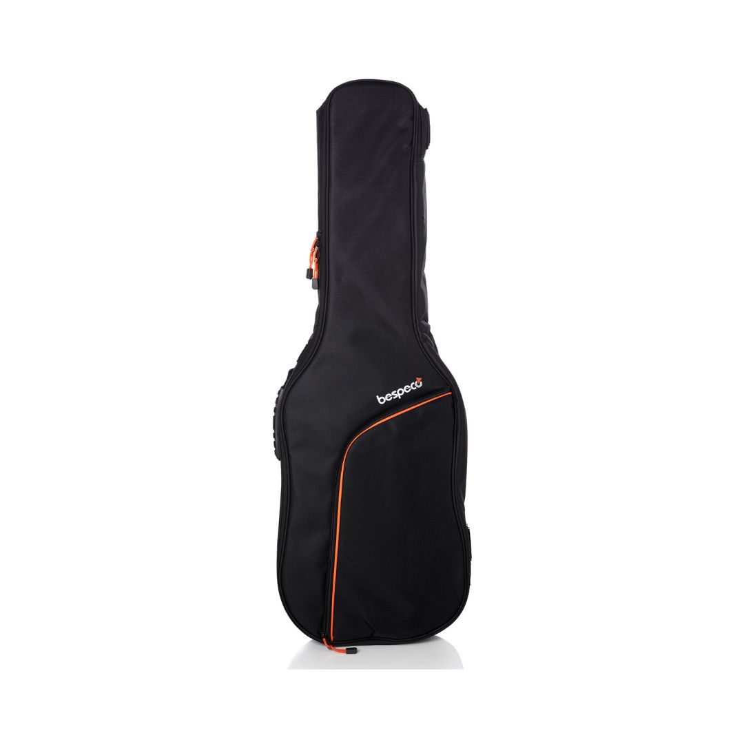 The Bespeco BAG10EG is a durable soft gig bag designed to protect electric guitars during transport and storage. It features 10 mm padding and a tear-proof 600D Oxford cloth exterior with reinforced PVC edging for reliable impact and scratch protection. Comfort is enhanced with a professional ergonomic handle and adjustable double shoulder straps, while rubber shock-resistant bumpers add extra safety. Practical details include a large front accessory pocket, strong anti-rip nylon zippers, a rear hanging hook, and internal reinforcement to safeguard the strings and bridge—making it a dependable choice for rehearsals, gigs, and studio use.