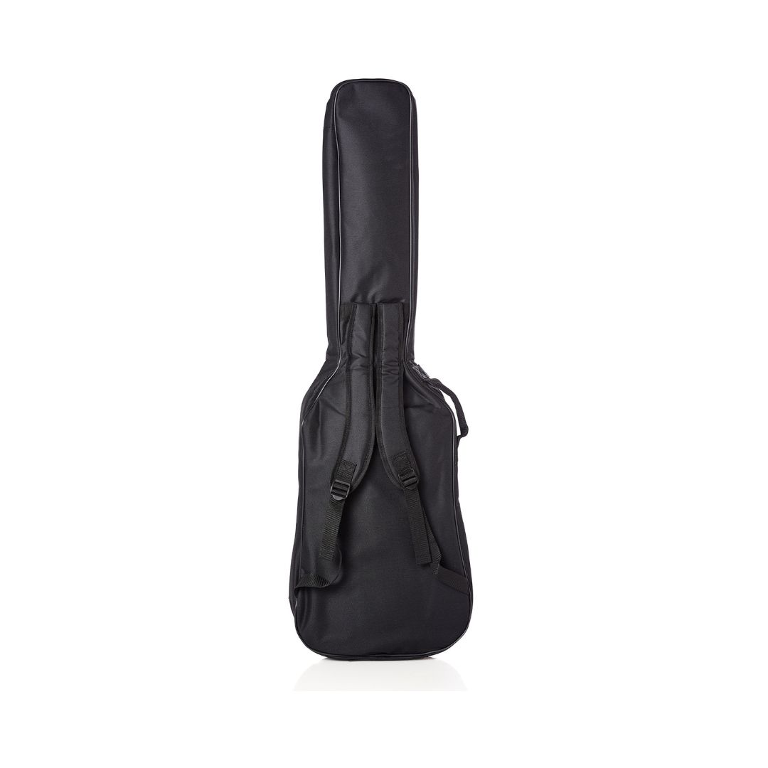 The Bespeco BAG5BG is a lightweight yet durable gig bag designed to protect electric bass guitars during transport and storage. It features 5 mm padding and is constructed from tear-proof Oxford cloth 600D, offering reliable protection against everyday knocks and scratches. Practical details such as a reinforced carry handle, adjustable double shoulder straps, a spacious front accessory pocket, rubber bumpers, and heavy-duty anti-rip zippers make it a dependable choice for rehearsals, lessons, and casual gigs, finished in a sleek black design with distinctive orange accents.