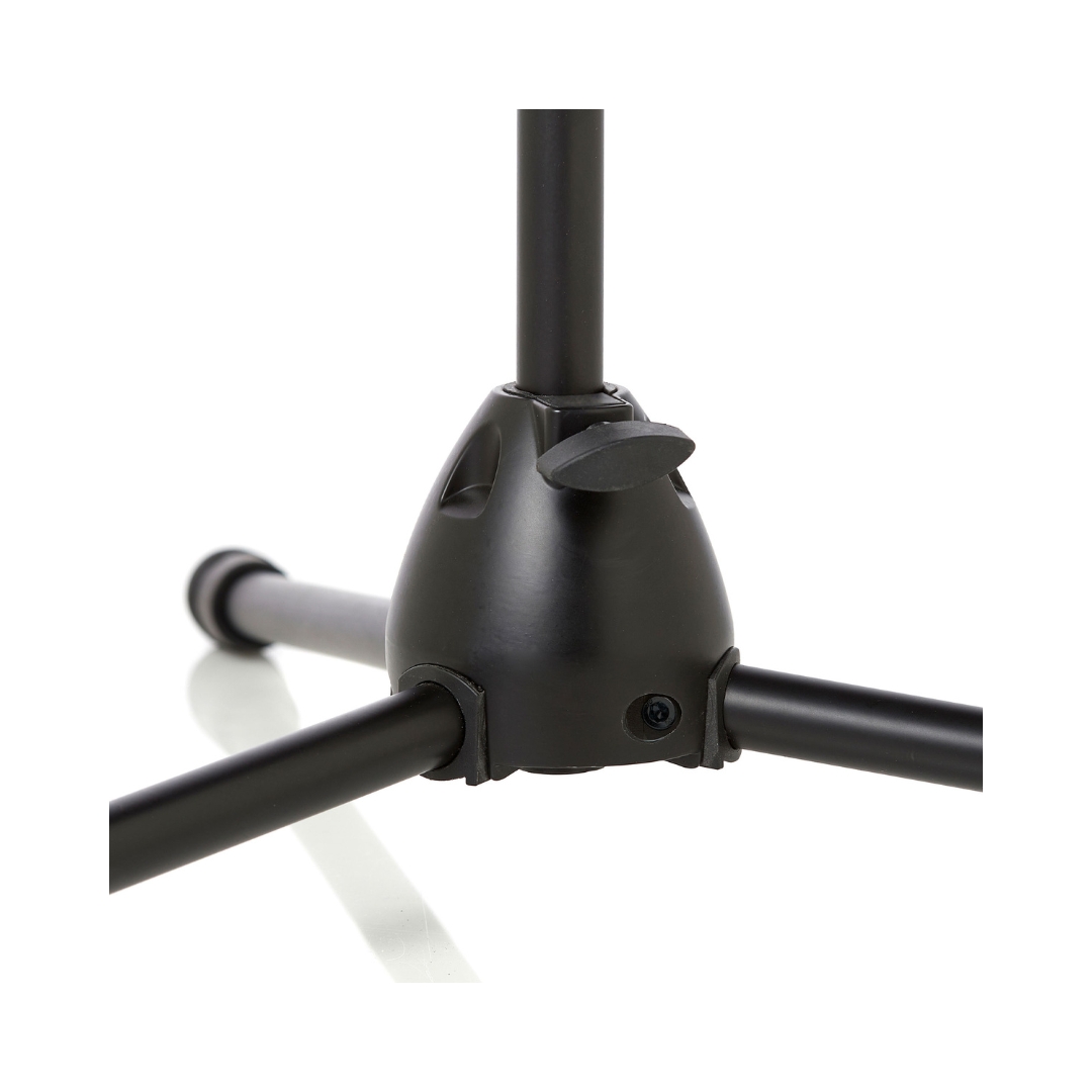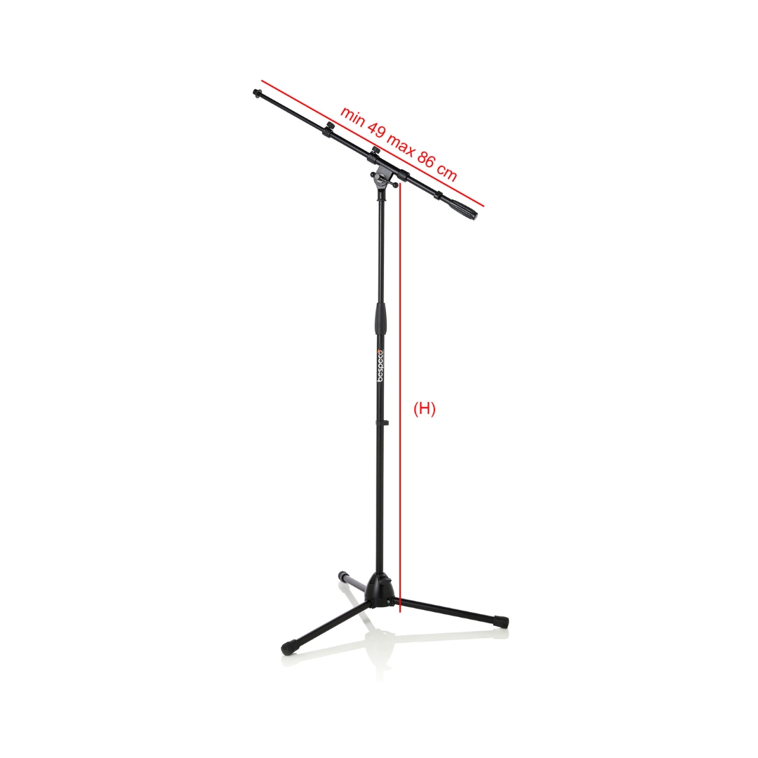 The Bespeco MS1 professional telescopic boom microphone stand is a sturdy, fully adjustable mic stand designed for stage, studio, and broadcast use. It features a durable all-metal construction with a robust central joint and boom arm, ensuring reliable microphone placement and precise positioning for vocals or instruments. The adjustable height range (approx. 97–167 cm) and telescoping boom provide flexibility for different performance setups, while the ergonomic central sleeve, nylon counterweight, and anti-vibration rubber feet enhance stability and reduce handling noise. Its professional design makes it suitable for live performances, rehearsals, and recording sessions where secure and versatile mic positioning is essential.