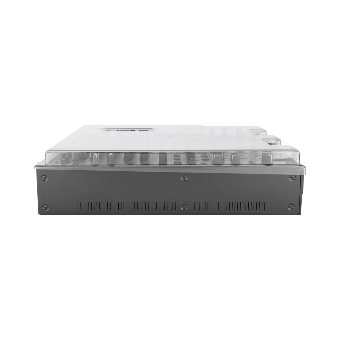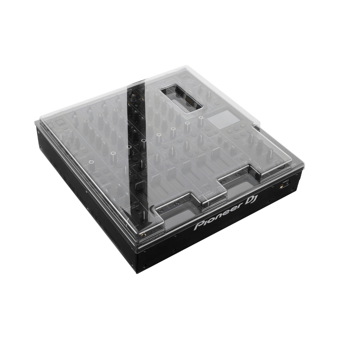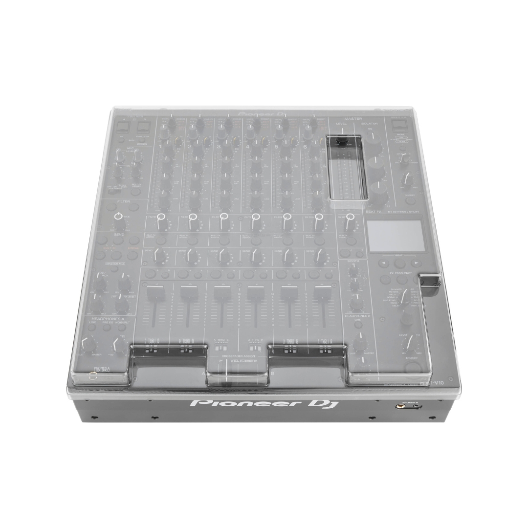 - The Decksaver Pioneer DJ DJM-V10/V10-LF Cover – DS-PC-V10 is a precision-molded polycarbonate cover designed to protect the mixer from dust, liquid spills, and accidental impacts while allowing cables to remain connected for a ready-to-use setup. Its durable construction safeguards faders, knobs, and controls from wear and damage, helping maintain optimal performance and extend the lifespan of the unit in both studio and live environments.