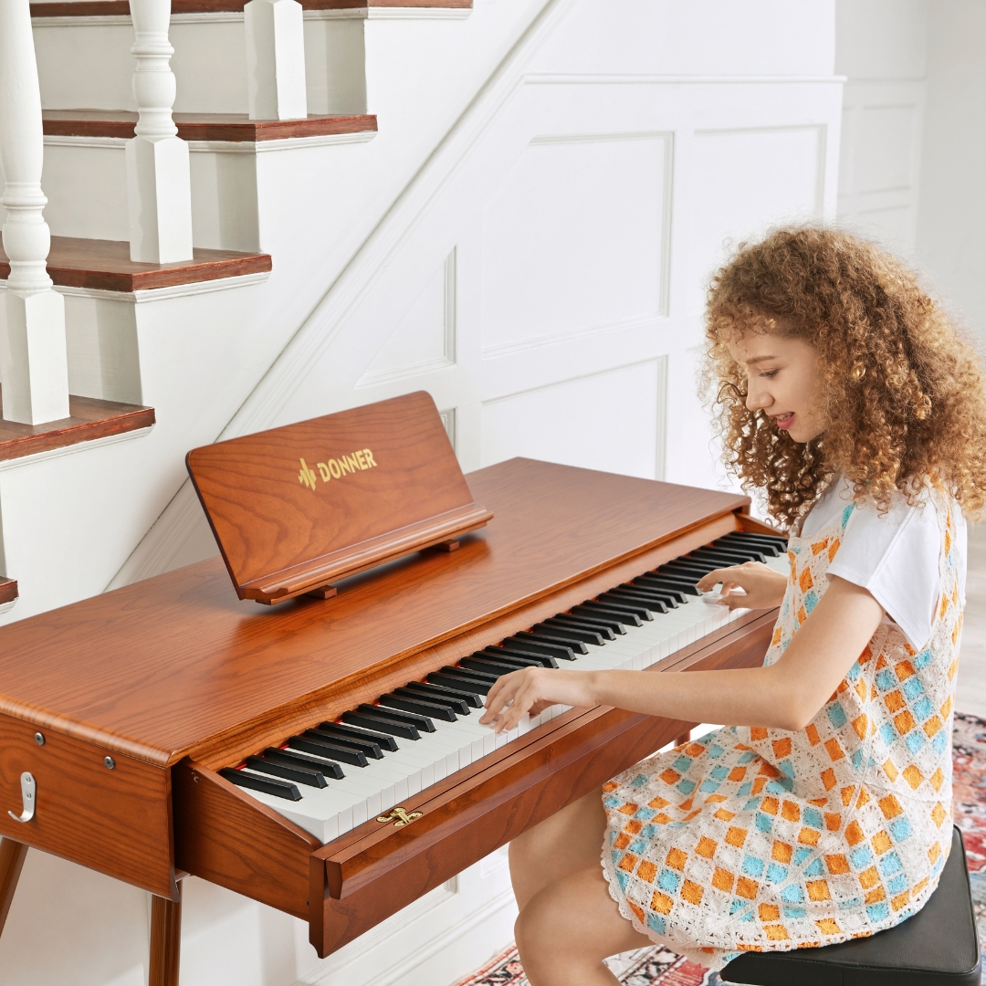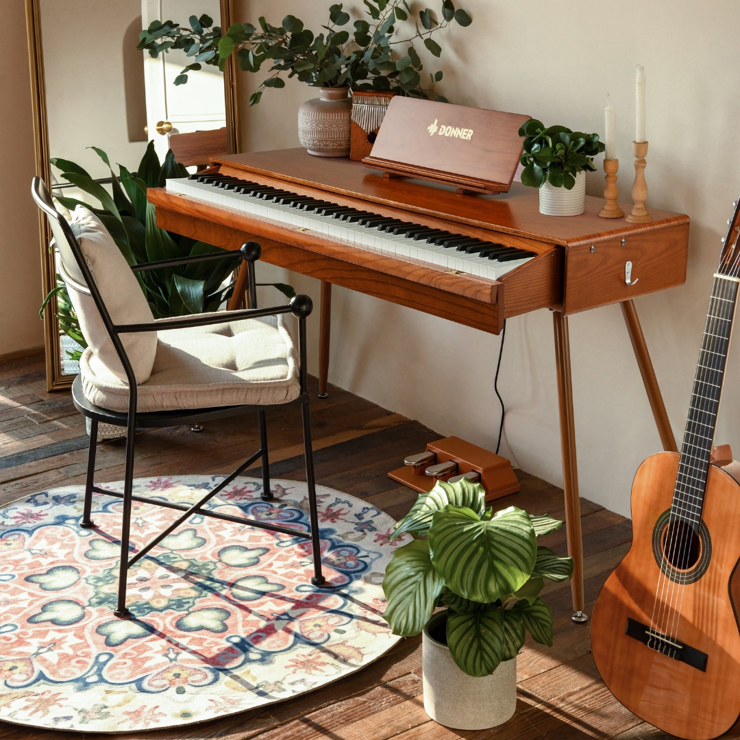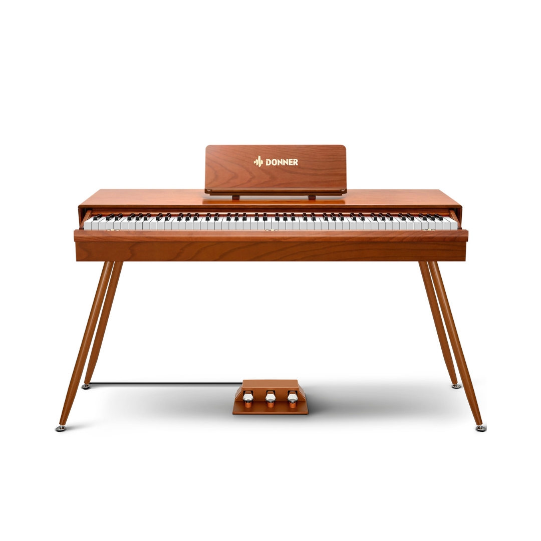 The Donner DDP-80 Pro digital piano offers style, functionality, and space-saving design, catering to both beginners and seasoned players. Its contemporary cabinet and compact size blend seamlessly with modern home decor. With versatile features including USB connectivity, audio accompaniment, and storage options, it’s not just an instrument but a decorative piece as well. The hammer action weighted keys provide a realistic playing experience, while advanced sound samples faithfully reproduce the tones of an acoustic piano. With headphone mode for silent practice, the DDP-80 Pro offers elegance, functionality, and superior sound quality for any musician.