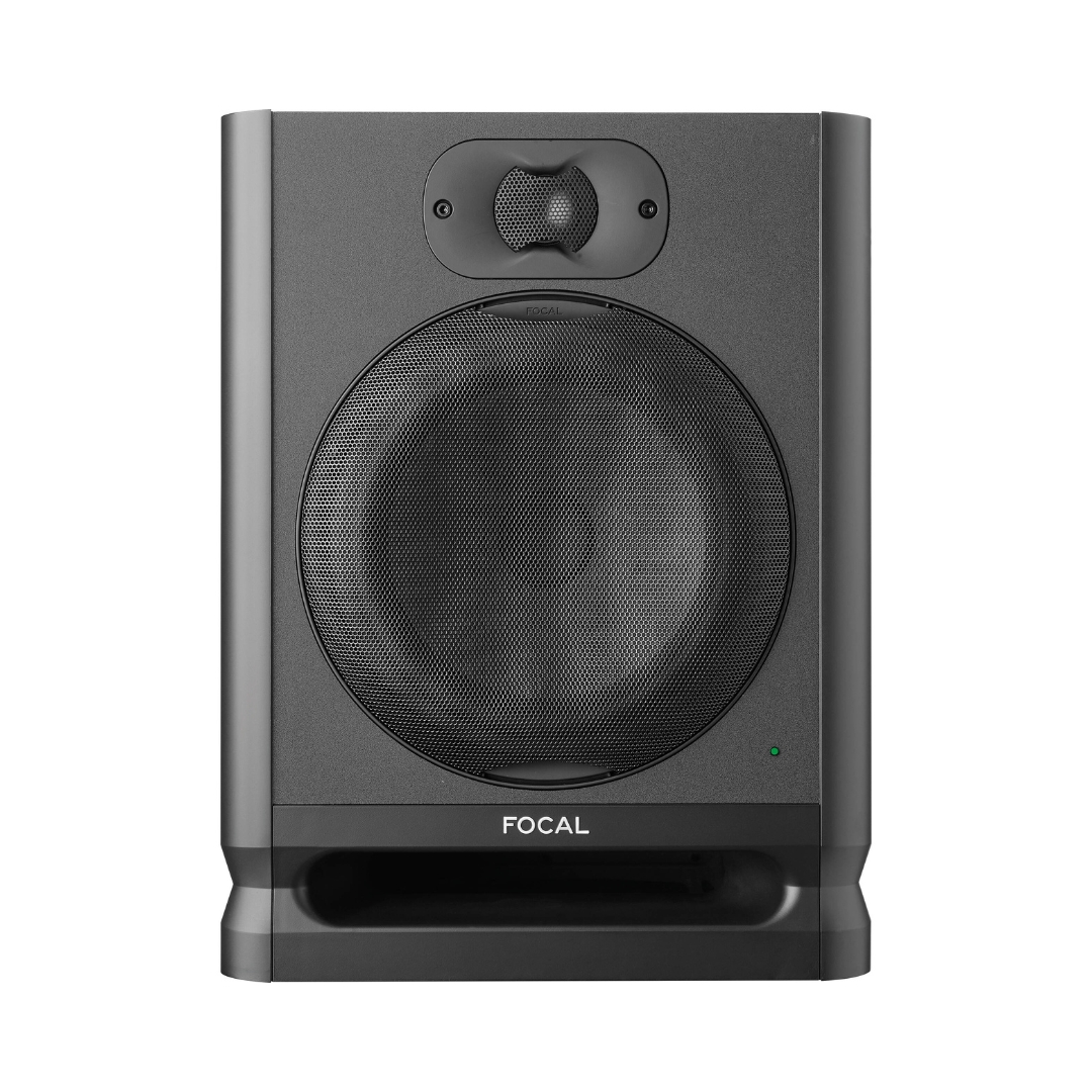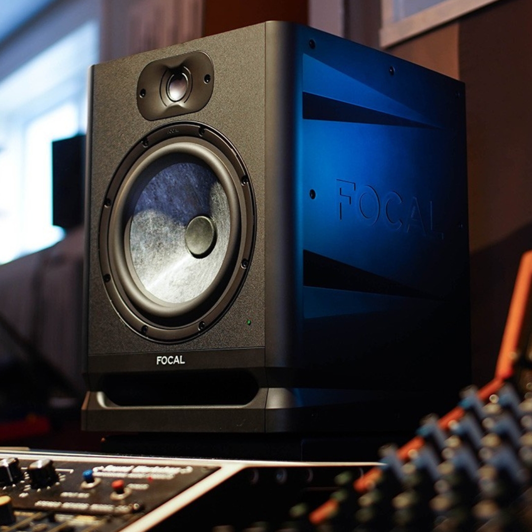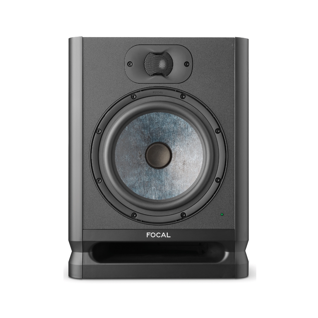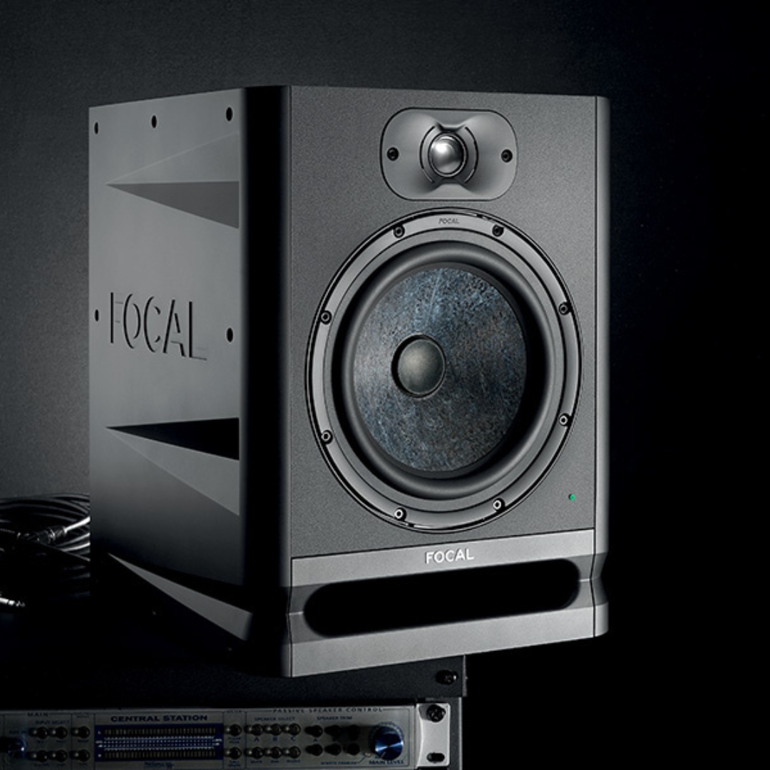 - The Focal Alpha 80 Evo is a professional nearfield speaker designed for accurate mixing, mastering, and playback. It features an 8-inch Slatefiber woofer and a 1-inch aluminum inverted dome tweeter for neutral, low-distortion sound, powered by dual Class-D amplifiers that deliver consistent performance across a 38 Hz to 22 kHz frequency range at both low and high volumes. It offers versatile connectivity via XLR, TRS, and RCA inputs, along with onboard EQ controls for bass (±6 dB) and treble (±3 dB) adjustment. A bass-reflex cabinet with a large laminar port enhances low-frequency response, while additional features include defeatable auto standby, sensitivity control, durable MDF construction with internal bracing, and wall-mount compatibility for flexible studio integration.
