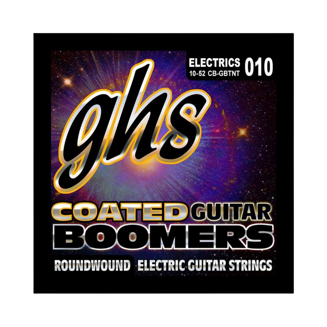 GHS CB-GBTNT Coated Boomers offer the legendary Boomers® tone with enhanced durability, making them ideal for players in humid environments. Featuring a unique coating process where the nickel-plated steel wrap is coated before winding onto the round core, these strings preserve clarity and sustain without sounding dull. With a thin-thick gauge configuration (10–52), they provide a balanced mix of playability and power for modern styles. Consistent feel, extended string life, and bright, punchy tone make them a dependable choice for serious players.