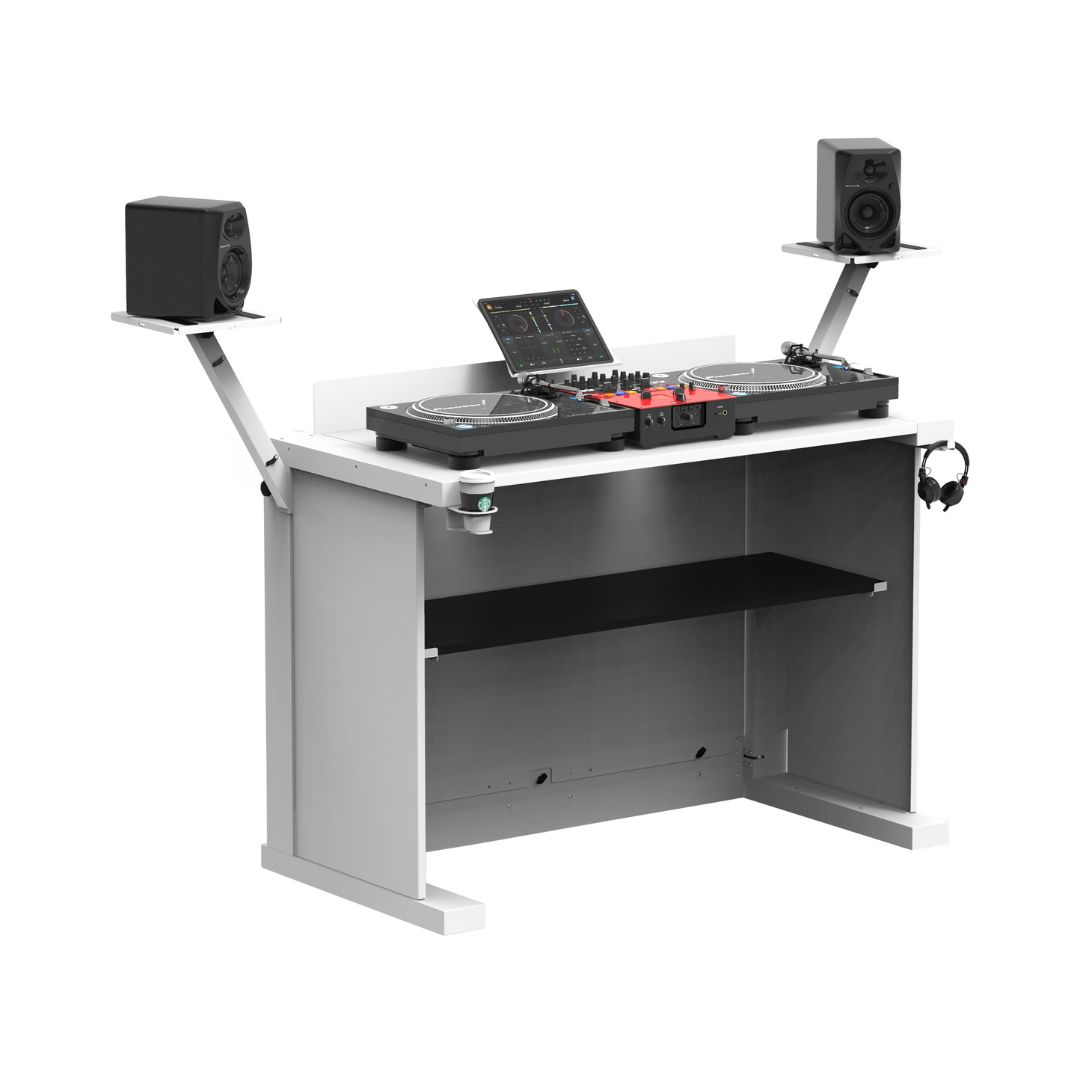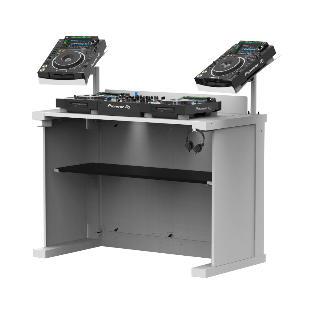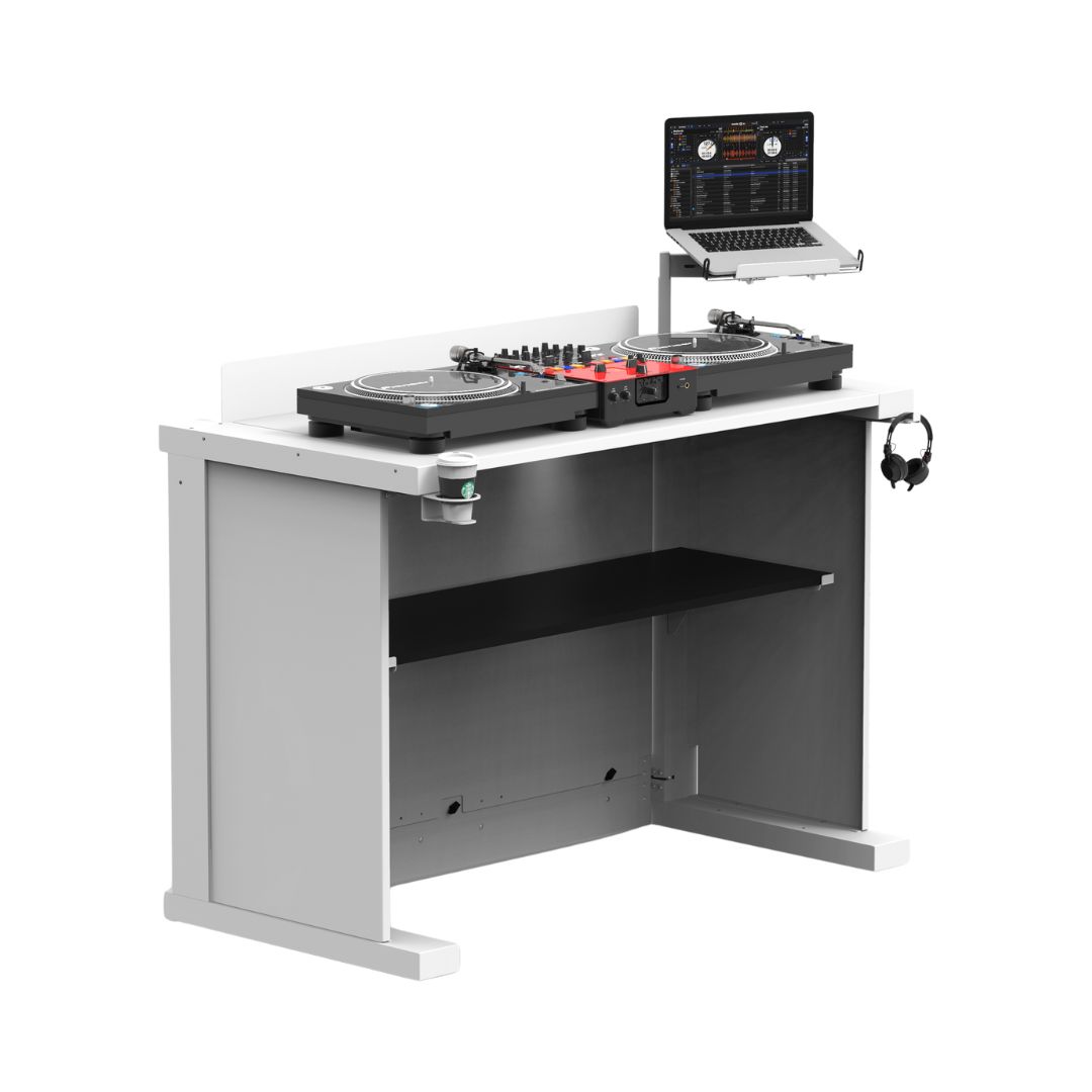 Modular DJ table design supports controllers, CDJs, turntables, mixers, and laptop setups