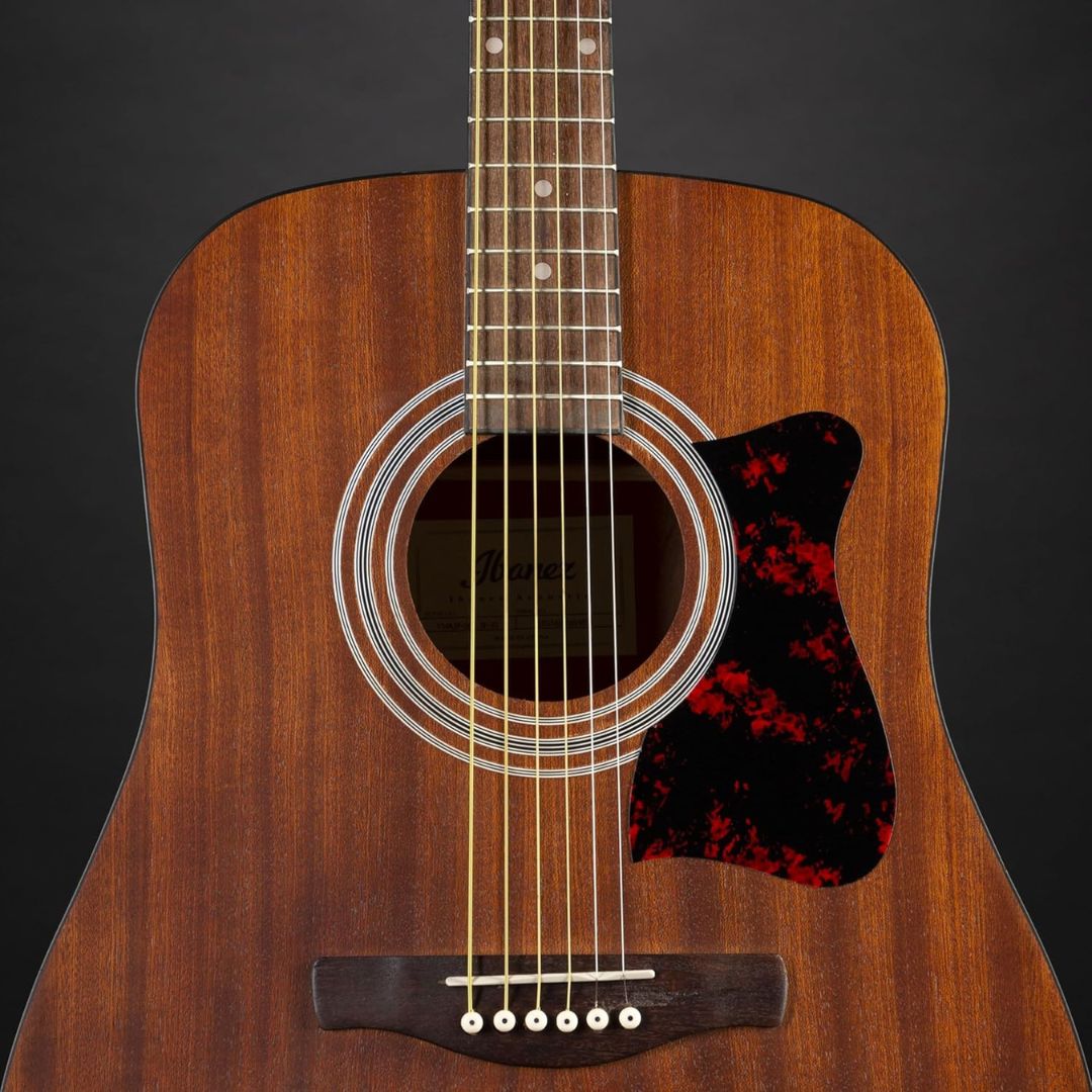 The Ibanez V54NJP-OPN Acoustic Jampack is a complete beginner-friendly dreadnought guitar bundle designed to deliver reliable playability and warm, balanced tone from day one. It features a comfortable Meranti neck, Nandu Wood fretboard and bridge for natural tonal response, and Ibanez Advantage™ bridge pins for improved string stability and easy restringing. Built with Ibanez’s renowned craftsmanship, the guitar offers stable tuning, a durable open-pore natural finish, and a classic dreadnought body suitable for folk, pop, rock, blues, and country styles. Ideal for players aged 10+, the Jampack includes all essential accessories—clip-on tuner, padded gig bag, strap, picks, and accessory pouch—so beginners can start playing immediately with confidence and quality they can trust.