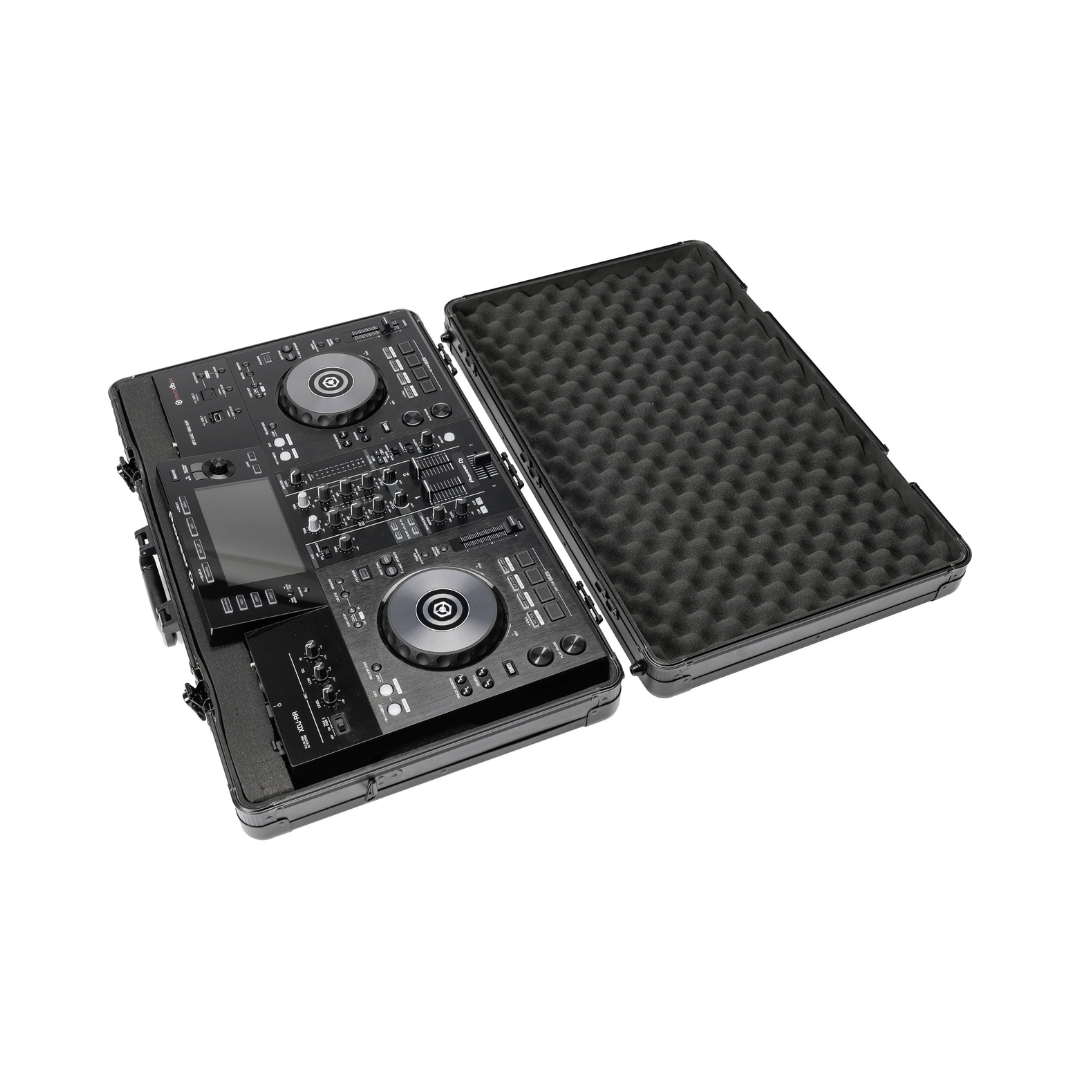 The Magma CARRY LITE DJ-CASE XXL (41103) is a lightweight, compact transport solution designed to protect modern DJ controllers in a sleek full-black matte finish. Built from laminated MDF with anodized aluminum profiles and secure butterfly latches, it ensures reliable durability for travel and live use. The fully padded EVA interior with egg-crate lid foam safeguards sensitive controls, while the customizable two-layer pick & pluck foam allows tailored compartments and additional space for a laptop or cables. A detachable lid and sturdy handle make it a practical choice for mobile DJs.