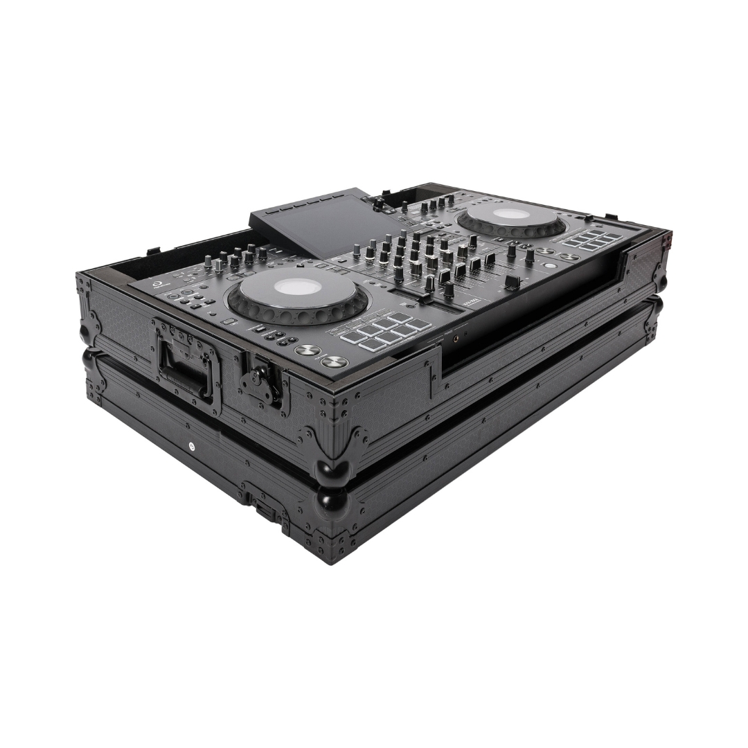 The Magma DJ-CONTROLLER CASE XDJ-AZ / XDJ-XZ BB (41040) is a heavy-duty flight case designed to protect AlphaTheta XDJ-AZ and Pioneer XDJ-XZ controllers during transport. Made from 9 mm vinyl-laminated plywood with aluminum profiles and spring-loaded butterfly latches, it ensures durability and impact protection. The fully padded interior and detachable front panel provide secure storage and easy access, while recessed wheels, multiple handles, and rubber feet make it convenient and stable for mobile DJs.
