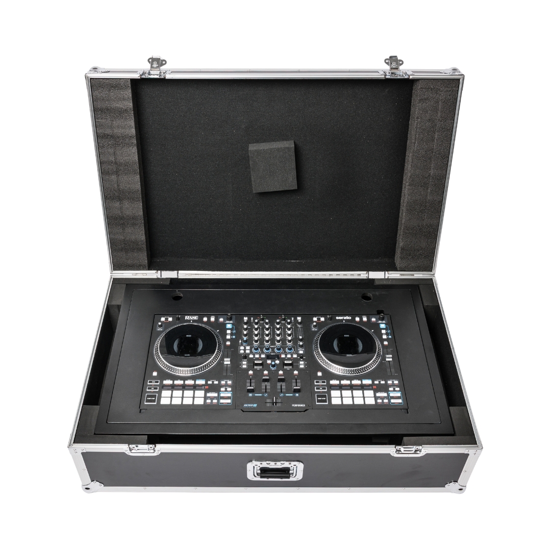 The Magma Groove Terminal XDJ-RX3 DJ Booth (Black) – 50002 is a premium all-in-one DJ workstation designed for mobile professionals who need a clean and stylish setup for events, clubs, or studios. Built from 15 mm eucalyptus plywood with a matte black sand-textured finish, it offers durability and a professional look. Pre-drilled cable routing holes keep power and audio lines neatly hidden for a clutter-free setup. The booth includes 3/8″ mounting points, a fully adjustable laptop stand, and 1U rack space for additional equipment. Designed for portability, it breaks down quickly and packs into two rugged flight cases for safe transport. It is specifically designed to fit the Pioneer DJ XDJ-RX3 controller.