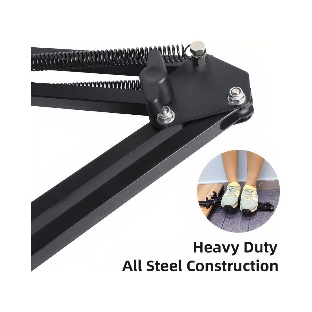 - The adjustable scissor arm stand is made of all-steel construction, sturdy and durable, even can hold one person weight 150 pounds, a standard microphone clip to mount most standard-sized handheld microphone