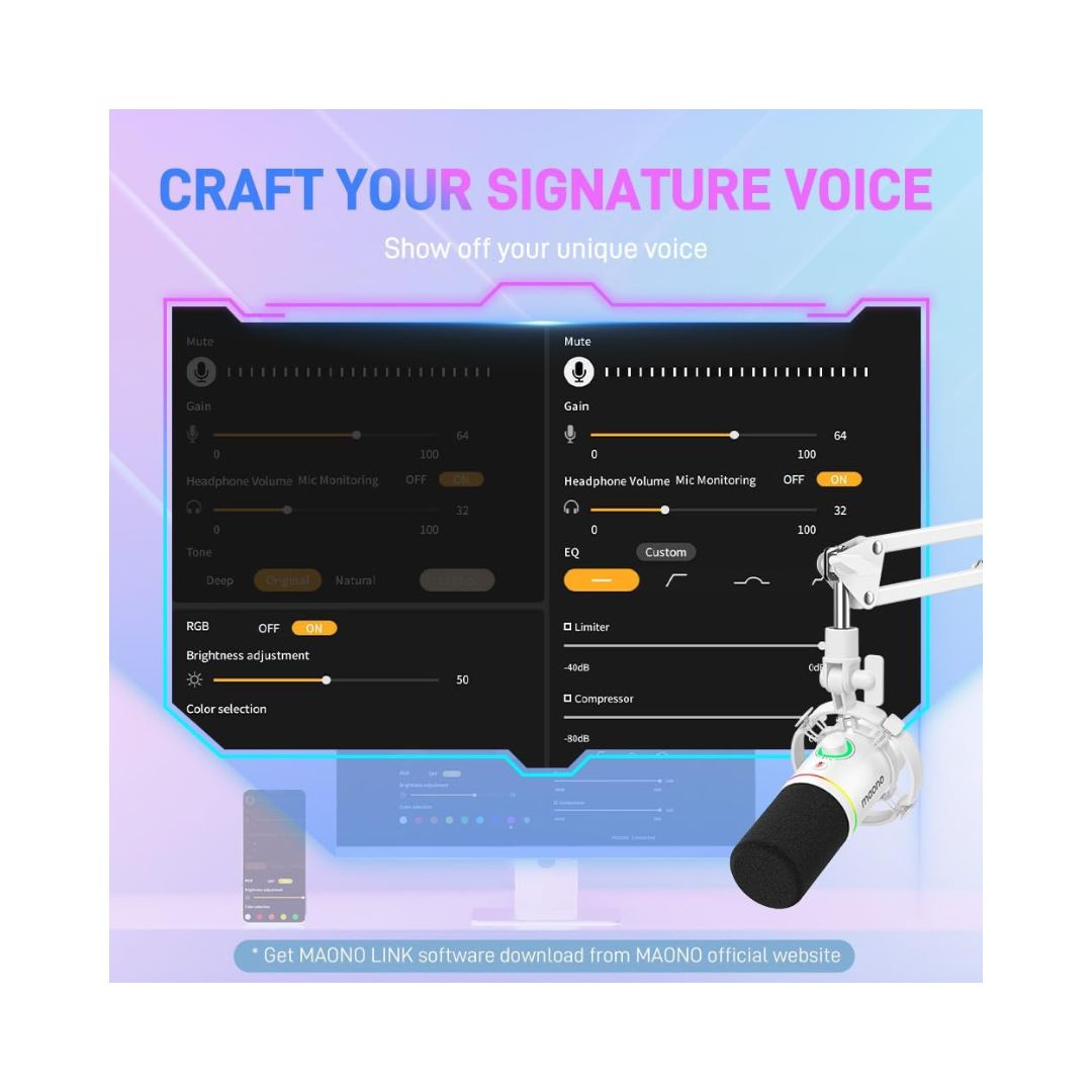 Compatible with Maono Link software to adjust EQ, limiter, and compressor in USB mode