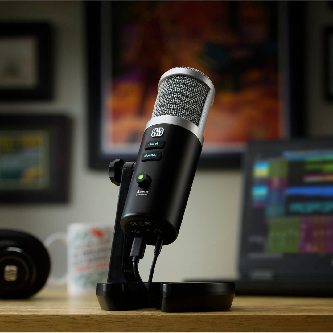 - The PreSonus Revelator is a professional USB condenser microphone that brings studio-grade recording, mixing, and processing together in one sleek device. It captures detailed, high-quality audio for vocals and acoustic instruments with selectable pickup patterns for different recording situations. Built-in effects, a digital mixer, and dual loopback channels let you shape your sound, blend audio sources, and stream or record effortlessly. With zero-latency headphone monitoring, USB-C bus power, and cross-platform compatibility, it delivers a complete, portable recording solution for musicians, podcasters, and content creators.