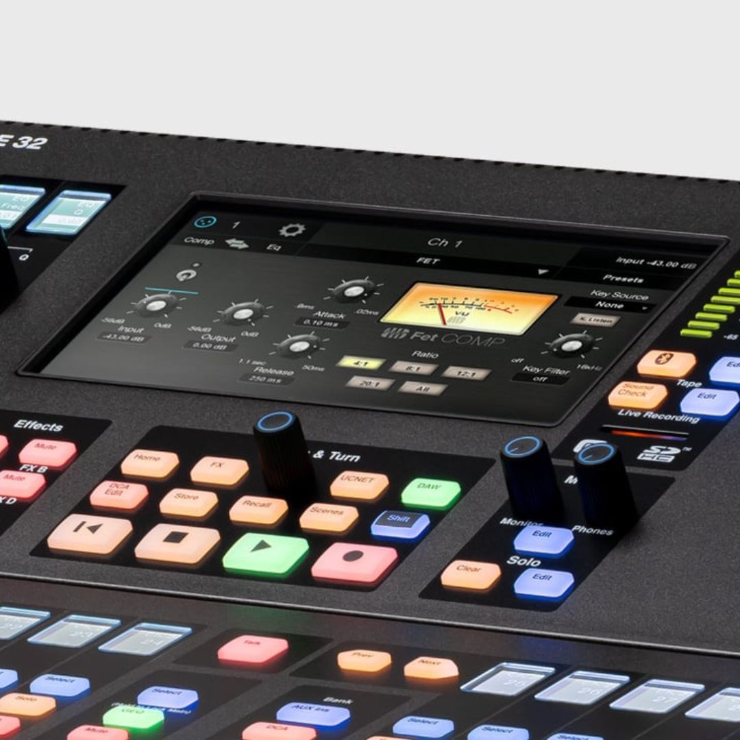 Powered by the FLEX DSP engine, the SE 16 delivers studio-grade processing with seven modeled EQs and eight vintage-style compressors on every channel and bus. Modeled after classic analog gear, these processors provide warmth and depth, while the intuitive Fat Channel workflow ensures fast, precise control for professional results in any live or studio setup.