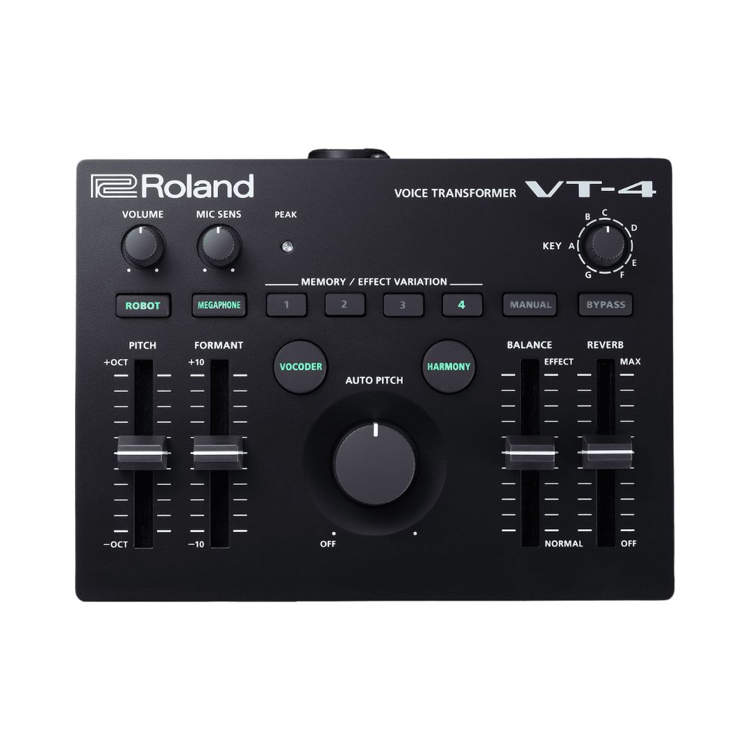 • The Roland VT-4 is a compact real-time vocal processor that transforms your voice from subtle pitch correction to dramatic effects like vocoding, harmonizing, hard tuning, and formant shifting. Dedicated faders and buttons allow smooth control over pitch, formant, balance, and reverb, with one-touch variations for lo-fi effects, multi-part harmonies, and delays. Up to eight scenes can be stored and recalled instantly for live or studio use. MIDI integration lets you control harmony and vocoder effects in real time for dynamic, layered vocals. Inputs include XLR/¼” with phantom power, stereo TRS outputs, and USB audio with loopback recording. Powered via USB or batteries, the VT-4 is ideal for singers, DJs, streamers, and podcasters crafting unique vocal sounds anywhere.