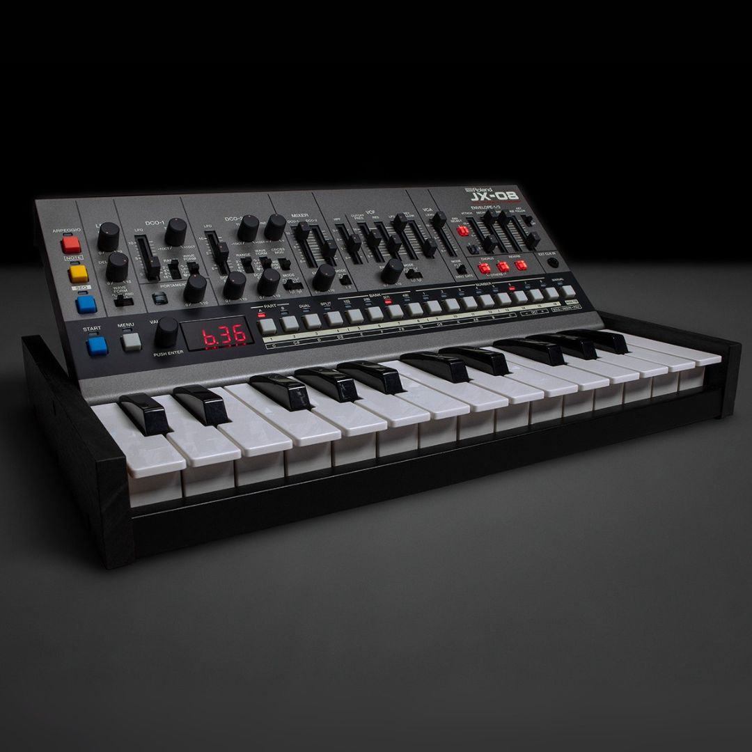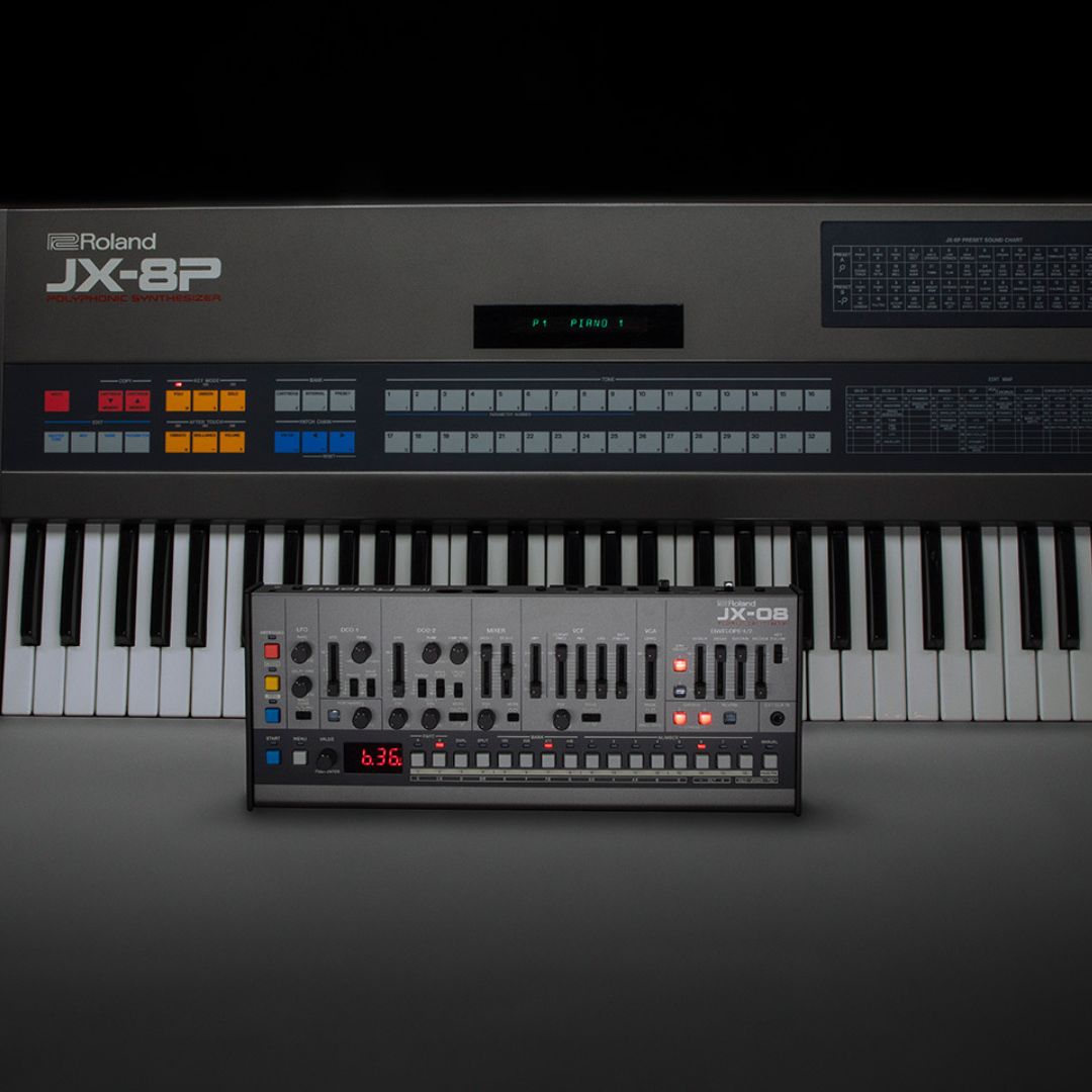 The Roland Boutique JX-08 recreates the iconic 1985 JX-8P hybrid synth with its warm pads, shimmery chorus, and crystalline textures. It includes 32 original presets plus 111 new sounds, PG-800 programmer functions, an onboard arpeggiator, and a two-part, 64-step polyphonic sequencer with motion recording and random pattern generation. Seventeen versatile effects—like JUNO-106 chorus, SDD-320 reverb, lo-fi compressor, super filter, and pitch shifter—add depth and character. Expanded polyphony (up to 20 voices) and two-part multitimbral capability allow dual and split setups. USB-C audio/MIDI, full-size MIDI I/O, and external clock input ensure seamless integration with DAWs and hardware. Compact, battery-powered, and built with a metal front panel, the JX-08 is perfect for studio, live, or mobile music creation.