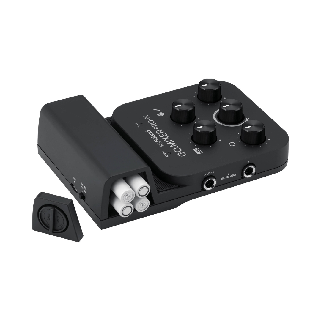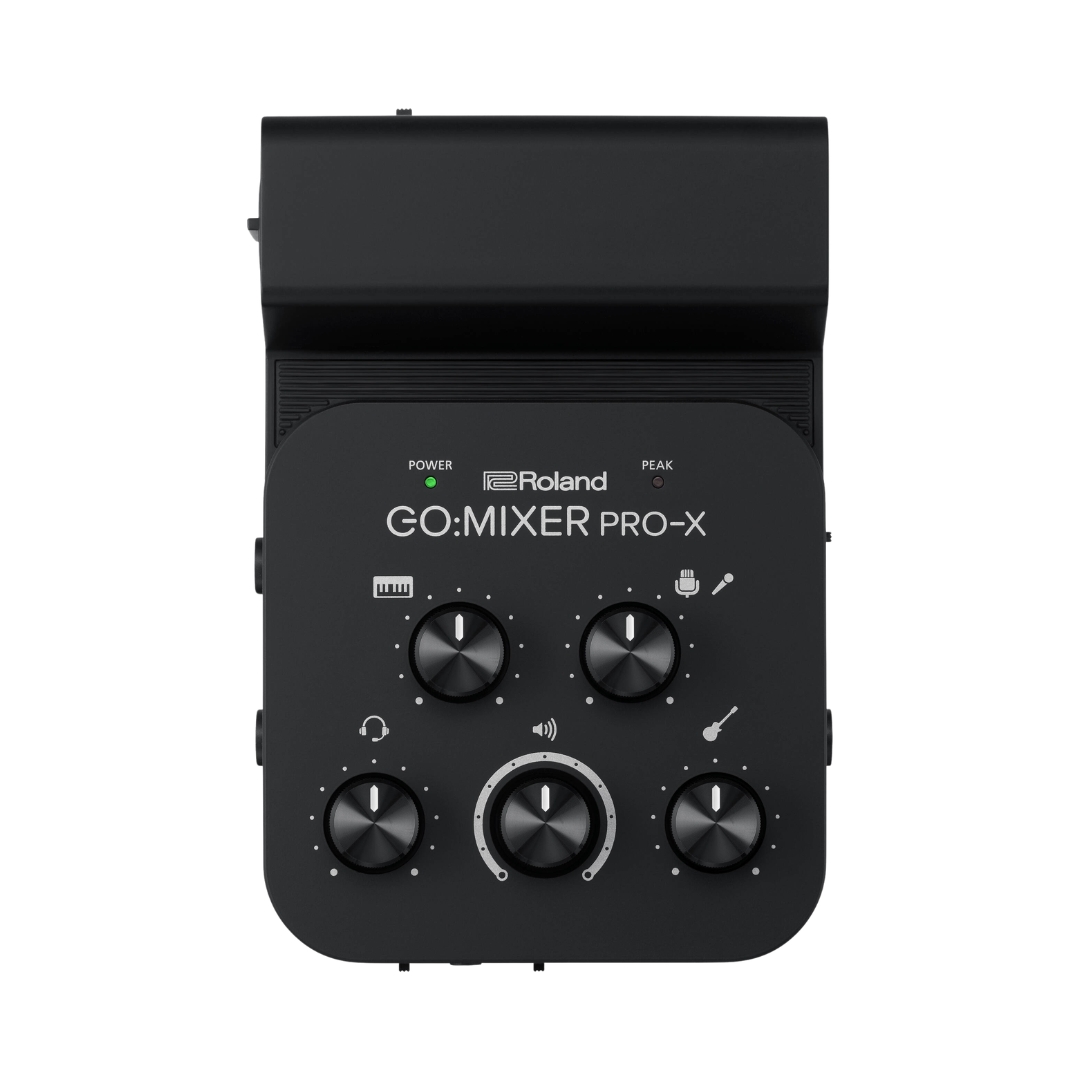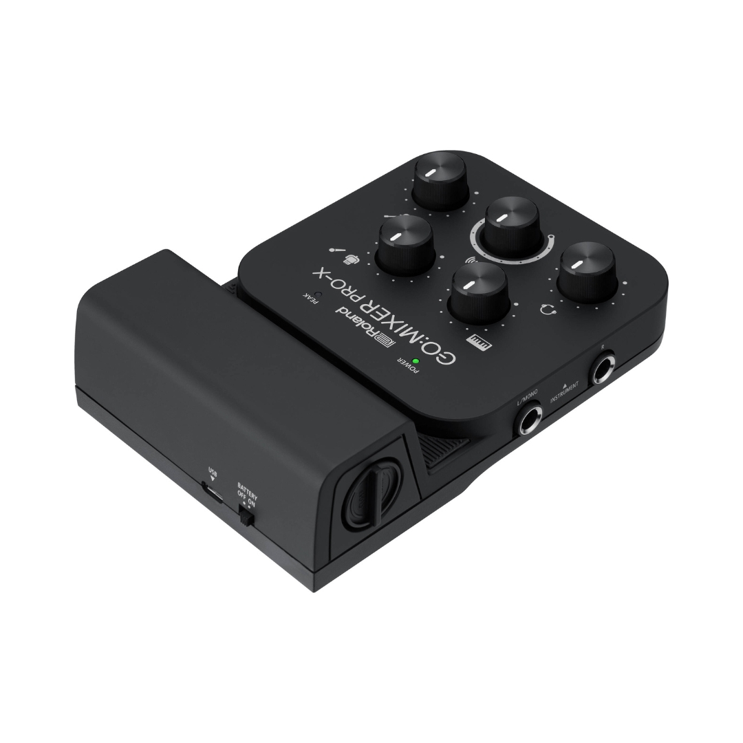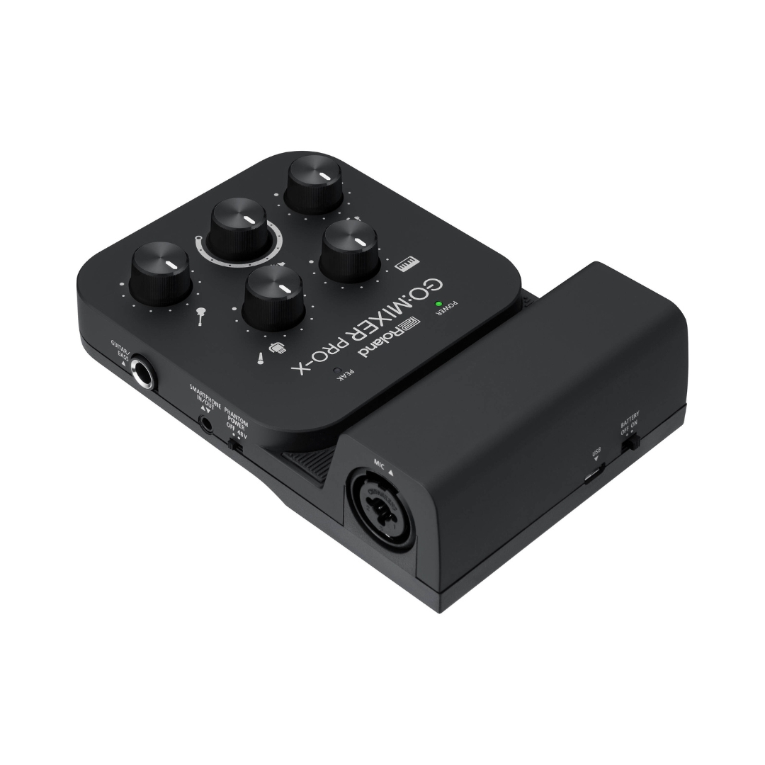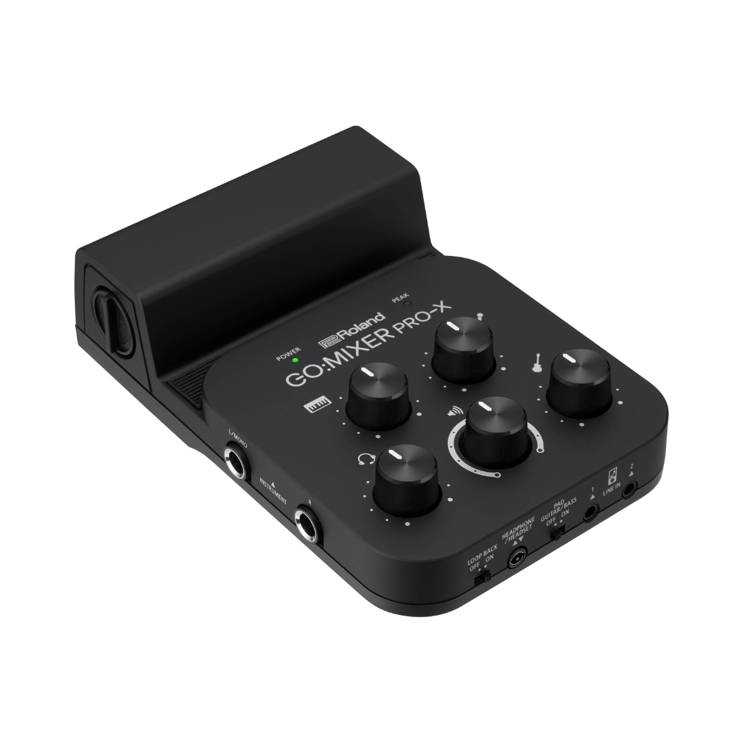 The Roland GO:MIXER PRO-X Audio Mixer for Smartphones is a compact and versatile mobile mixer designed to deliver high-quality audio for content creators using phones or tablets, allowing multiple audio sources such as microphones, instruments, and line-level devices to be connected and mixed with clarity that surpasses built-in device microphones. With intuitive controls and flexible input options, including support for XLR microphones and a loopback function for integrating backing tracks, it is suitable for both solo creators and group performances. Its portable design, wide device compatibility, and ability to run on mobile power or batteries make it an ideal solution for producing professional-sounding livestreams, videos, and recordings anywhere.