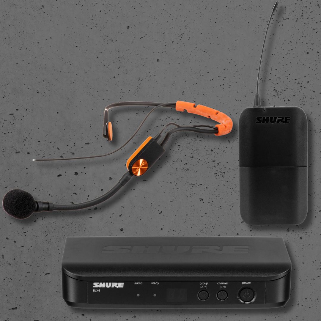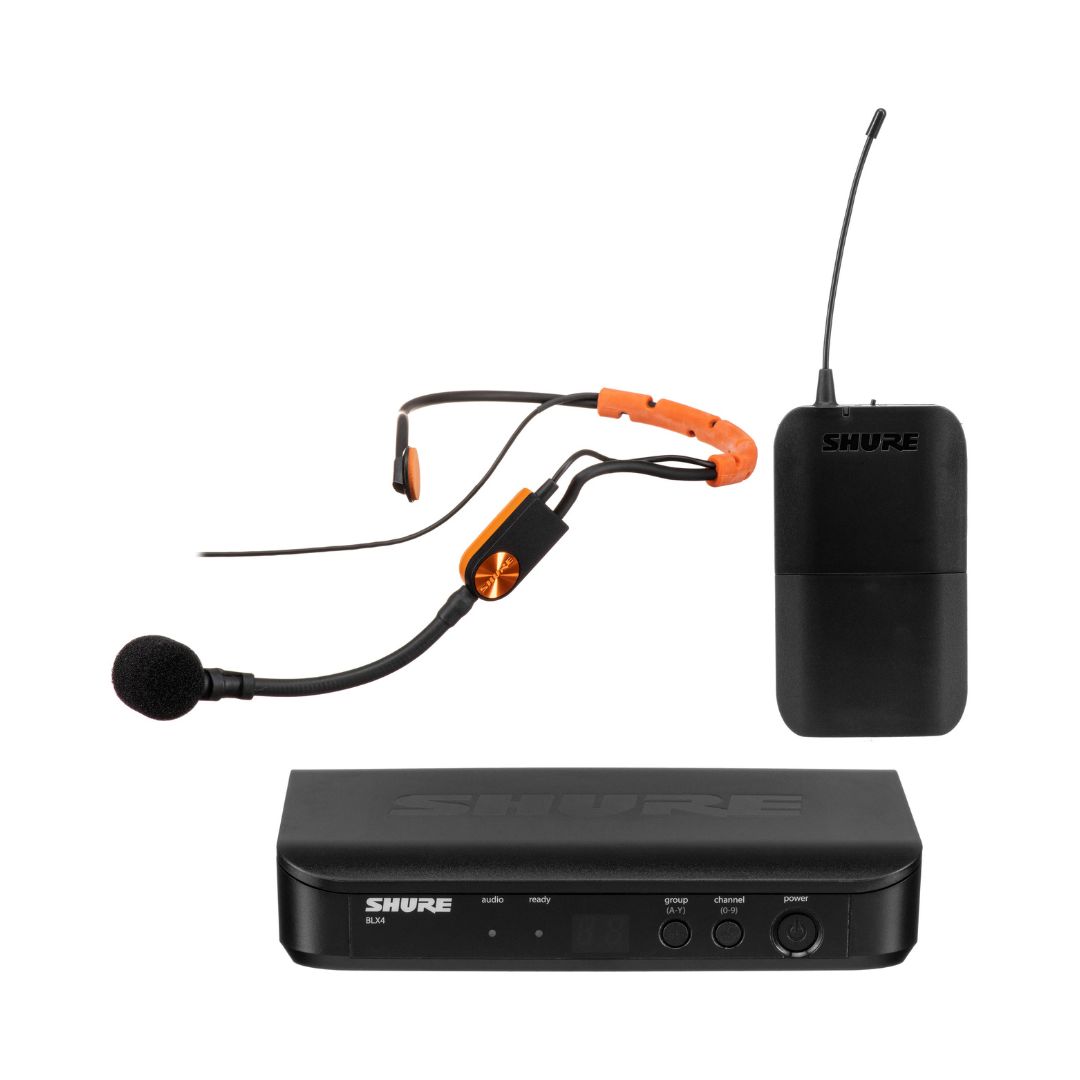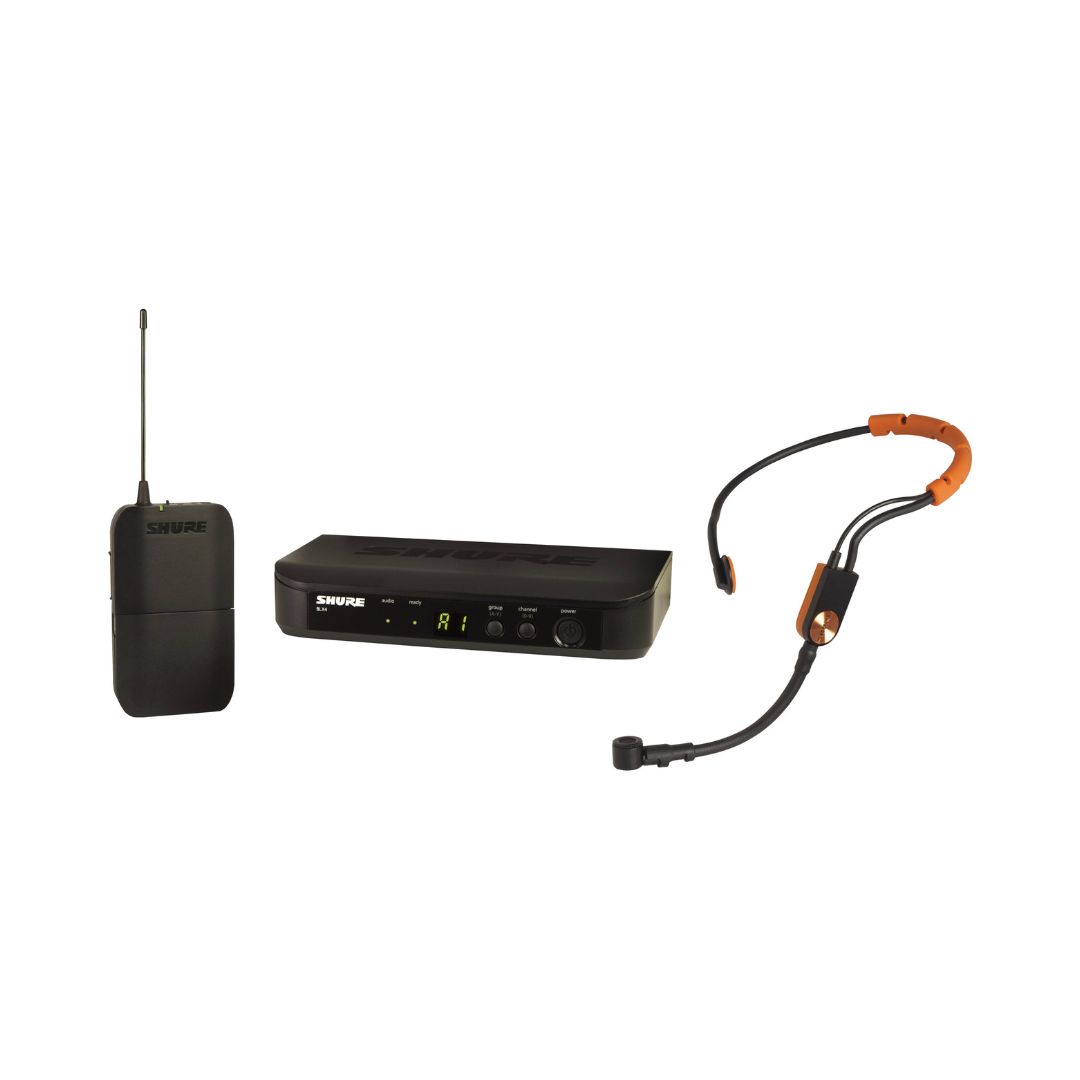 The Shure BLX14/SM31 Wireless Fitness Headset System is a dependable wireless solution designed for fitness instructors and active presenters, delivering clear, professional-quality vocal sound with simple setup and intuitive operation. It includes the sweat-resistant SM31FH cardioid headset microphone, engineered to stay secure during high-movement activities while rejecting unwanted background noise. The lightweight BLX1 bodypack transmitter ensures comfortable wear, while the compact BLX4 tabletop receiver offers reliable signal stability with one-touch QuickScan frequency selection. With a range of up to 300 ft (100 m), up to 14 hours of battery life, and support for up to 12 simultaneous systems per frequency band, it is ideal for gyms, studios, and live instruction environments where reliability and clarity are essential.