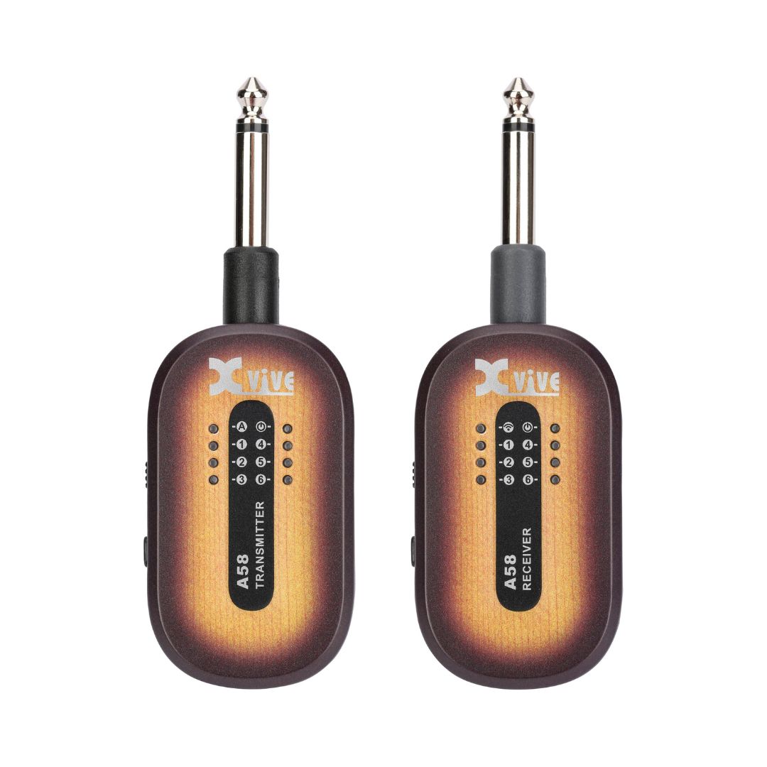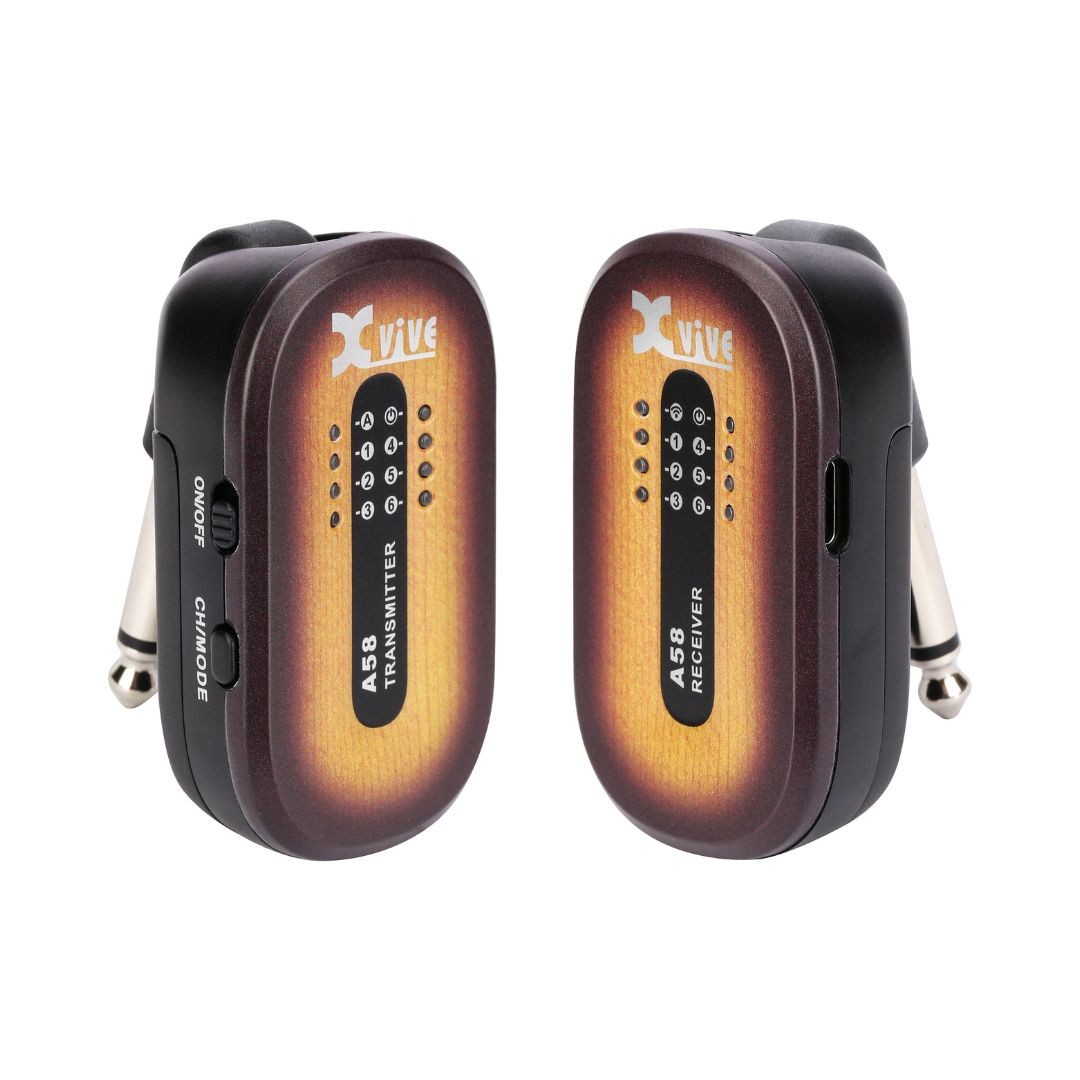 The A58 Guitar Wireless System delivers reliable 5.8 GHz true-diversity performance with clean 24-bit/48 kHz audio and ultra-low latency for stage and studio use. It offers up to 100 feet of stable wireless range, automatic channel scanning, and full compatibility with passive and active pickups. With six selectable channels, the system ensures interference-free operation even in crowded environments. Both transmitter and receiver provide up to five hours of battery life and can be charged simultaneously via the included dual USB-C cable. Its open-battery-compartment design supports long-term serviceability and durability. A compact carry case is included for easy transport and protection on the go.